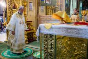 Alături de Întâistătător s-a rugat prot. mitr. Vadim Cheibaș, secretar mitropolitan și eclesiarh al catedralei împreună cu soborul preoțesc prezent.