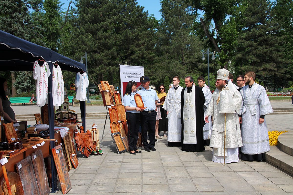 După Liturghia praznicală, Episcopul Ioan a vizitat expoziția cu vânzare din preajma Catedralei, organizată de Administrația Națională a Penitenciarelor, binecuvântând și sfințind icoanele, dar și alte obiecte, lucrate manual de către deținuți.