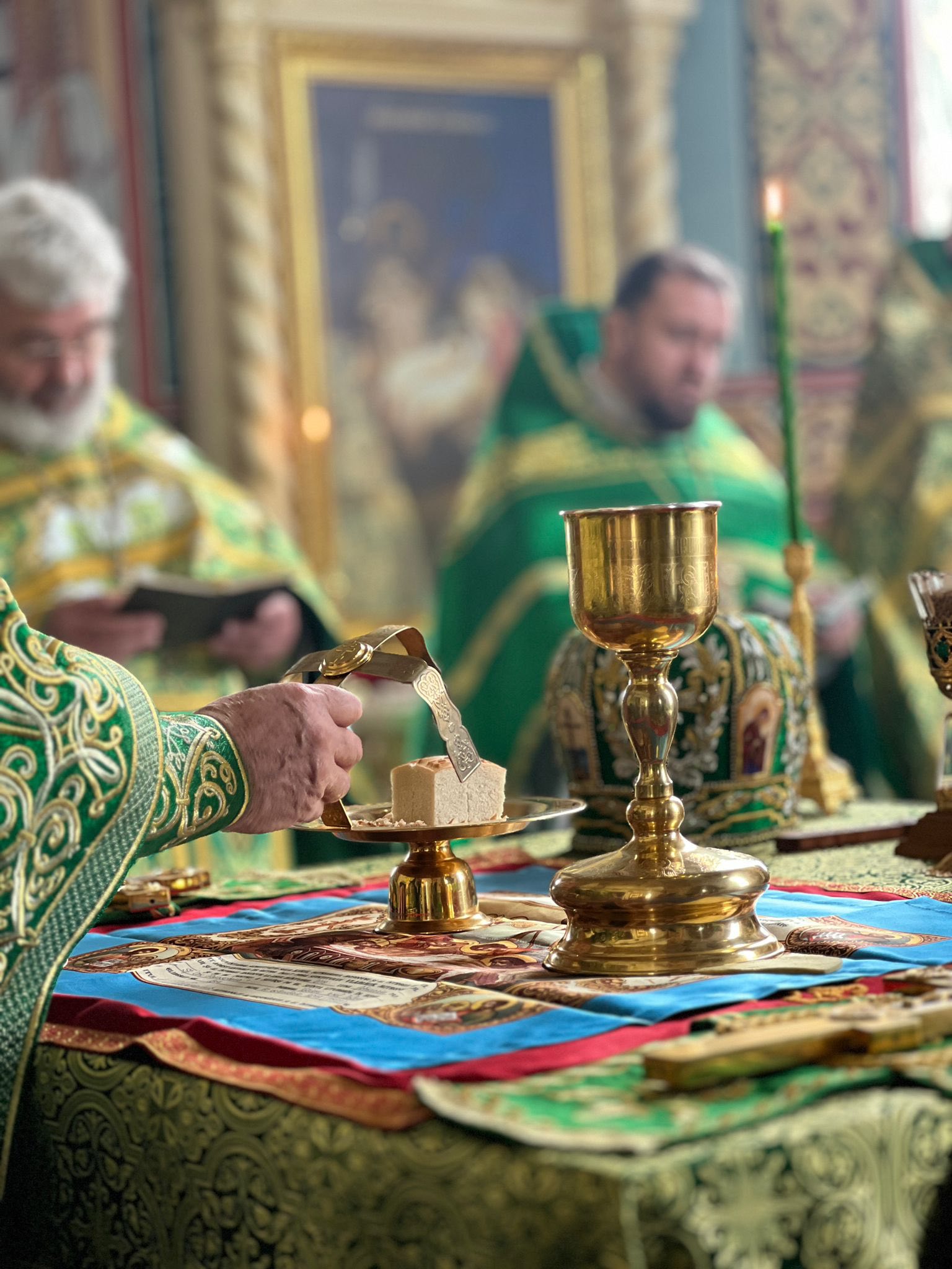 Sfânta și Dumnezeiasca Liturghie praznicală a fost oficiată de către protoiereul mitrofor Anatolie Stefanov, protopop de Ialoveni, înconjurat de un sobor de preoți invitați, care s-au unit în rugăciune de mulțumire pentru binecuvântările revărsate de Dumnezeu asupra acestei sfinte biserici de-a lungul deceniilor.