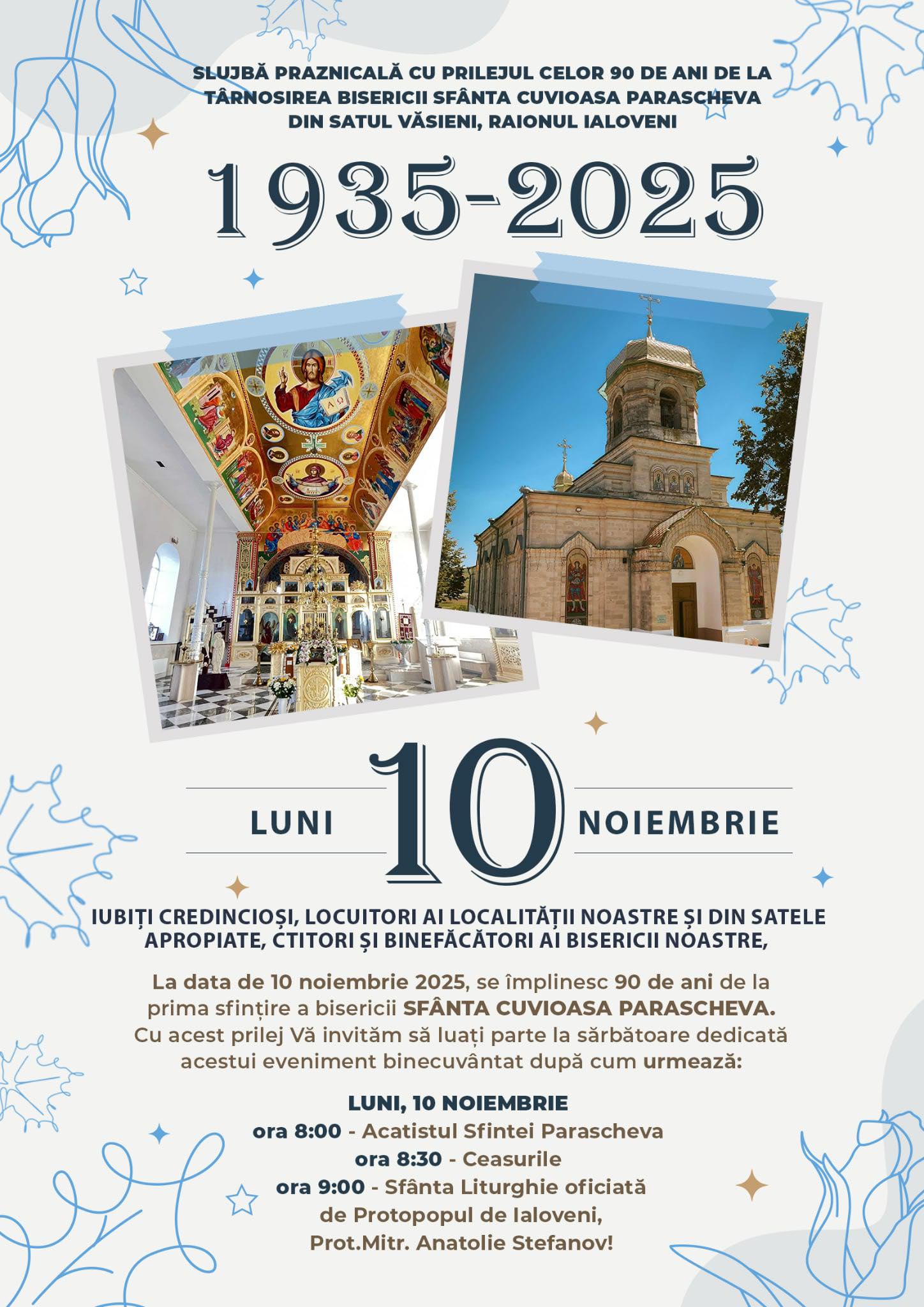 În ziua de prăznuire a împlinirii a 90 de ani de la prima sfințire a bisericii cu hramul Sf. Cuv. Parascheva din satul Văsieni, raionul Ialoveni, enoriașii au trăit clipe de profundă bucurie duhovnicească, marcând un eveniment istoric pentru comunitate.