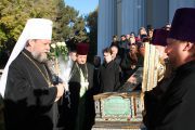 Sfințeniile au fost întâmpinate în dimineața zilei, de către ÎPS Mitropolit Vladimir, dimpreună cu preoți și numeroși credincioși.