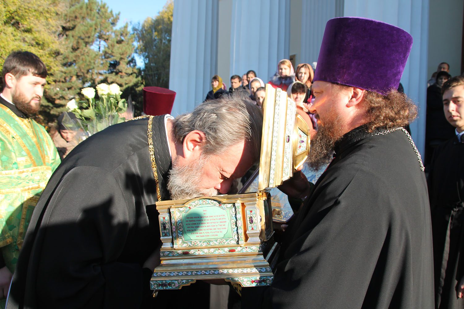 Sfințeniile au fost întâmpinate în dimineața zilei, de către ÎPS Mitropolit Vladimir, dimpreună cu preoți și numeroși credincioși.