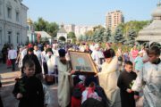 În dimineața zilei de marți, 21 august, la Mănăstirea Ciuflea din Chișinău, PS Anatolie, Episcop de Cahul și Comrat însoțit de către un sobor de preoți și numeroși credincioși a întâmpinat această sfințenie la intrarea în Sfânta Mănăstire.