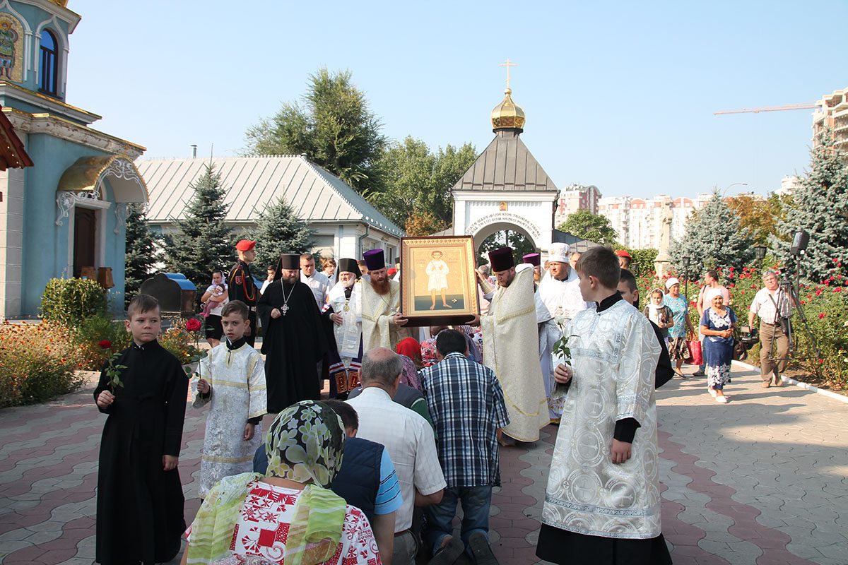 În dimineața zilei de marți, 21 august, la Mănăstirea Ciuflea din Chișinău, PS Anatolie, Episcop de Cahul și Comrat însoțit de către un sobor de preoți și numeroși credincioși a întâmpinat această sfințenie la intrarea în Sfânta Mănăstire.