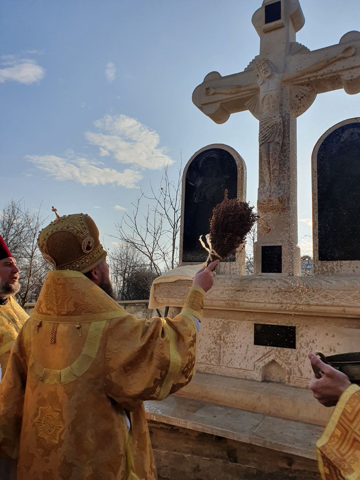 După Liturghie vlădica Ioan a sfințit o troiță din curtea bisericii, lucrată de către meșterii populari din Cosăuți și ctitorită de către familia Poalelungi Gheorghe și Ludmila.