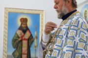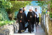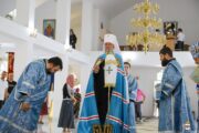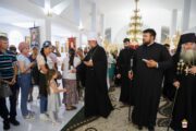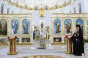 În dimineața zilei, cu deosebită dragoste fiască, obștea călugărească în frunte cu părintele Arhimandrit Adrian (Baciu), căreia i s-a alăturat și numeroși pelerini, l-au întâmpinat pe Întâistătător la poarta Mănăstirii, iar, mai apoi adunarea drept-măritoare s-a îndreptat către Catedrala în construcție „Învierea Domnului”, unde a avut loc Sfânta și Dumnezeiasca Liturghie.