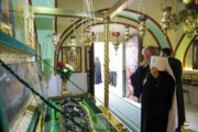 Ierarhul a vizitat și biserica Sfânta Treime din incinta Mănăstirii, aici s-a închinat la cinstitele moaște ale Cuviosului Macarie de la Saharna și s-a rugat pentru poporul Moldovei, pentru pace și bunăstare în întreaga lume.