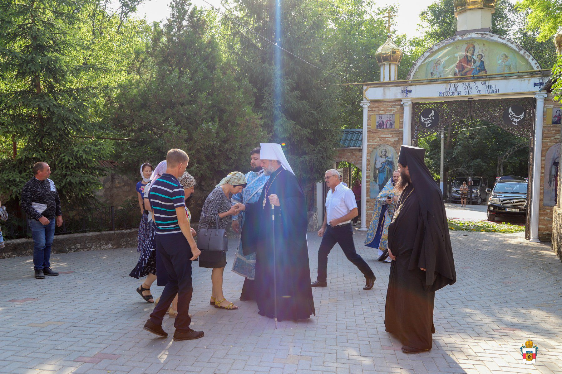 În dimineața zilei, cu deosebită dragoste fiască, obștea călugărească în frunte cu părintele Arhimandrit Adrian (Baciu), căreia i s-a alăturat și numeroși pelerini, l-au întâmpinat pe Întâistătător la poarta Mănăstirii, iar, mai apoi adunarea drept-măritoare s-a îndreptat către Catedrala în construcție „Învierea Domnului”, unde a avut loc Sfânta și Dumnezeiasca Liturghie.