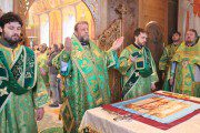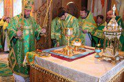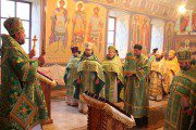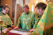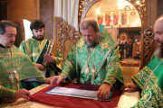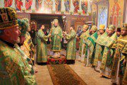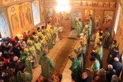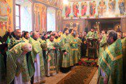 Întâlnit fiind de duhovnicul-administrator al așezământului monahal, Prot. Mitr. Veaceslav Șpac, Întâistătătorul a binecuvântat binecredincioasa adunare, compusă din credincioși, obștea mănăstirii și numeroși preoți coliturghisitori, după care a săvârșit slujba de sfințire a emblematicii biserici cu hramul „Adormirea Maicii Domnului”, care a trecut prin ample lucrări de renovare.