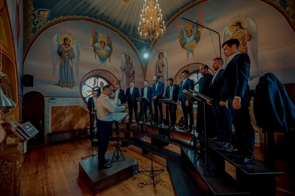 Răspunsurile la Sfânta Liturghie au fost date de corul arhieresc al mănăstirii Curchi, condus de dl Dumitru Buga.