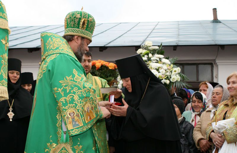Și Maica stareță a primit din mâinile Mitropolitului Vladimir o deosebită decorație, la fel adoptată recent – Ordniul “Meritul Bisericesc”, pentru îndelungata și prolifica activitate duhovnicească și administrativă, deidcată în totalitate vieții mănăstirești de la Hâncu.