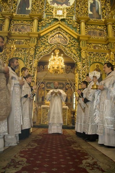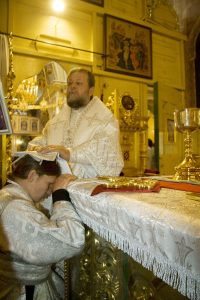 În timpul slujbei, tânărul monah Efrem (Romaniuc) a fost hirotonit în treapta de ierodiacon, prilej cu care Vlădica Vladimir l-a felicitat și l-a îndemnat spre ascultare și spre dăruire totală slujirii altarului, virtuți care înfrumusețează viața călugărului și îi dau chip îngeresc. Înalt Prea Sfinția Sa a mai îndemnat pe nou-hirotonitul ierodiacon să ia aminte la Sfinții Apostoli care primind poruncă de la Mântuitorul să meargă și să propovăduiască dreapta credință până la marginile pământului, au făcut acest lucru fără a-și precupeți puterile, unii dintre ei plătind cu viața pentru dragostea lor față de Hristos, căci anume astfel trebuie să viețuiască un călugăr, în uitare de sine și în dragoste absolută pentru Dumnezeu.
