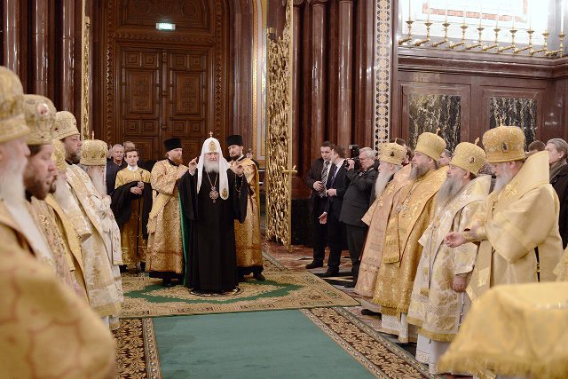 Ziua de 1 februarie a fost marcată de oficierea Sfintei Liturghii în Catedrala “Hristos Mântuitorul” din Moscova, cu ocazia celebrării a patru ani de la întronizarea Preafericitului Kiril în calitate de Întâistătător al Bisericii Ortodoxe Ruse.