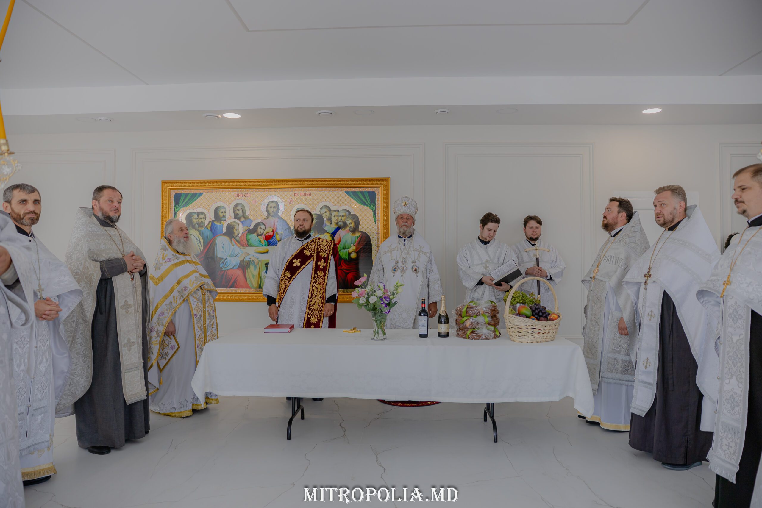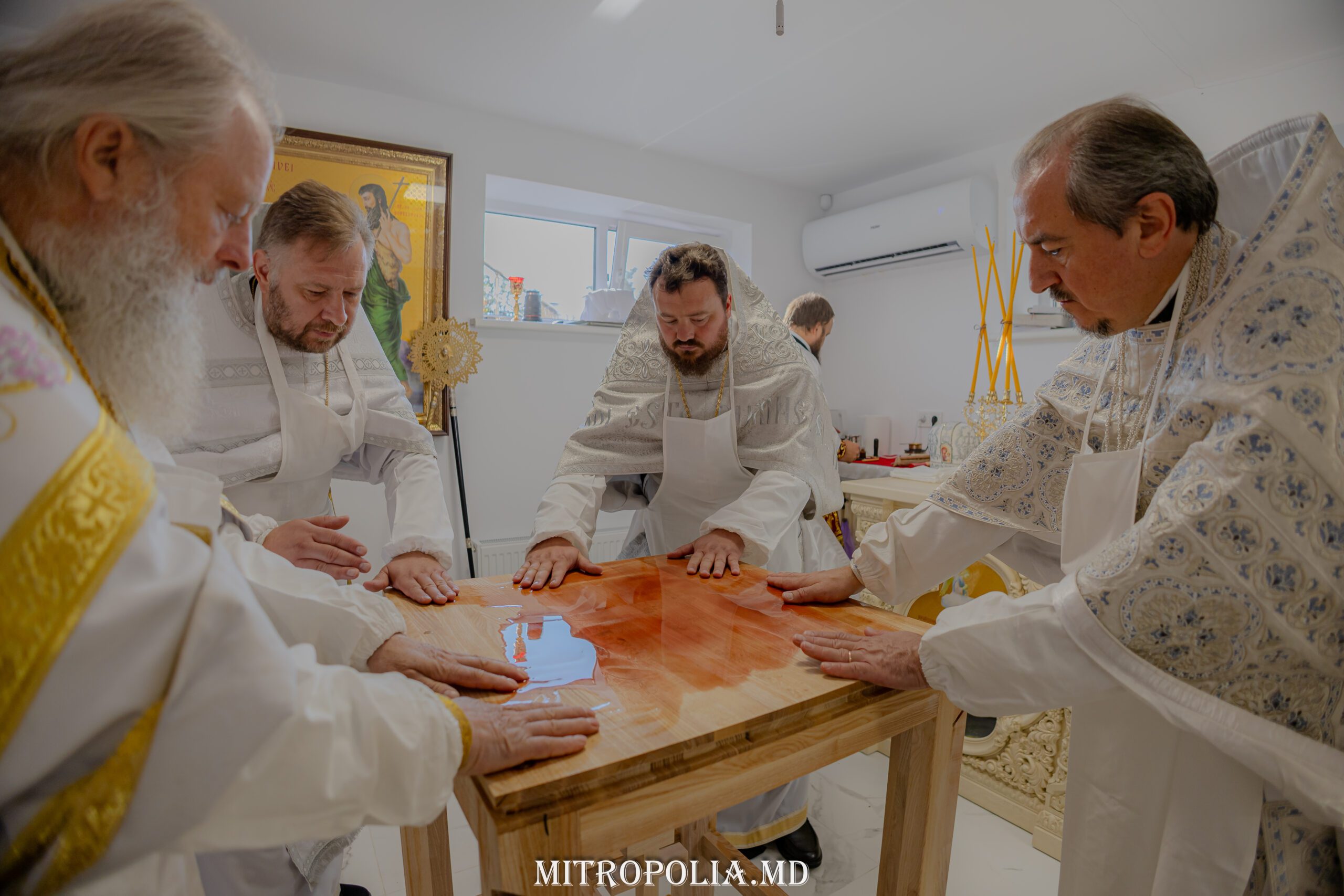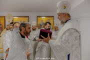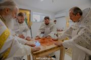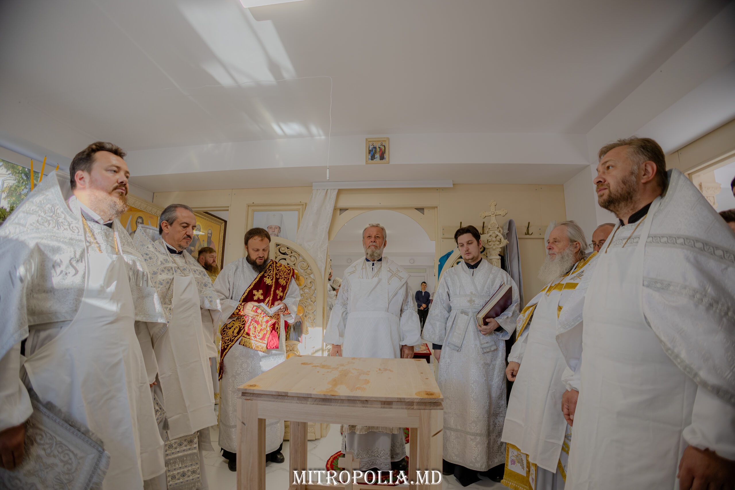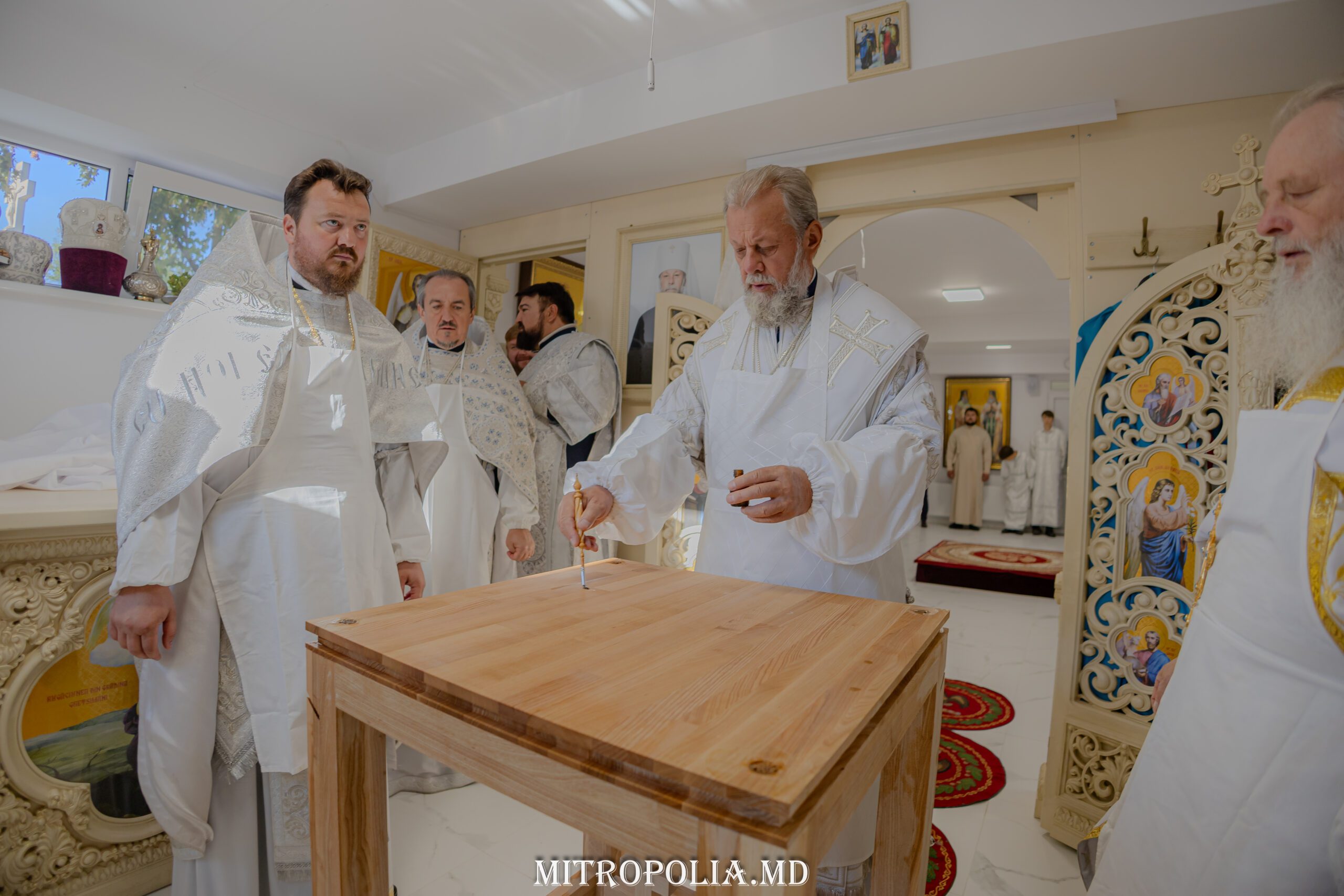 Serviciul divin a început cu săvârșirea rânduielii sfințirii Sfintei Mese, moment deosebit care marchează deplin sfântul locaș pentru slujirea liturgică.