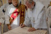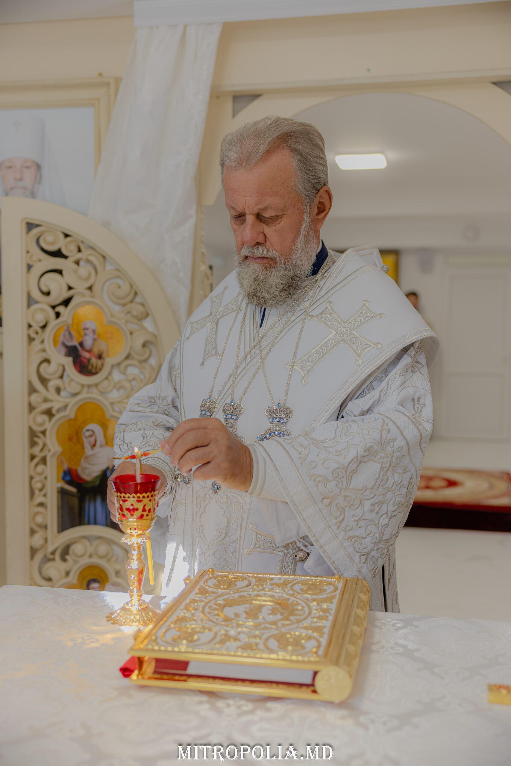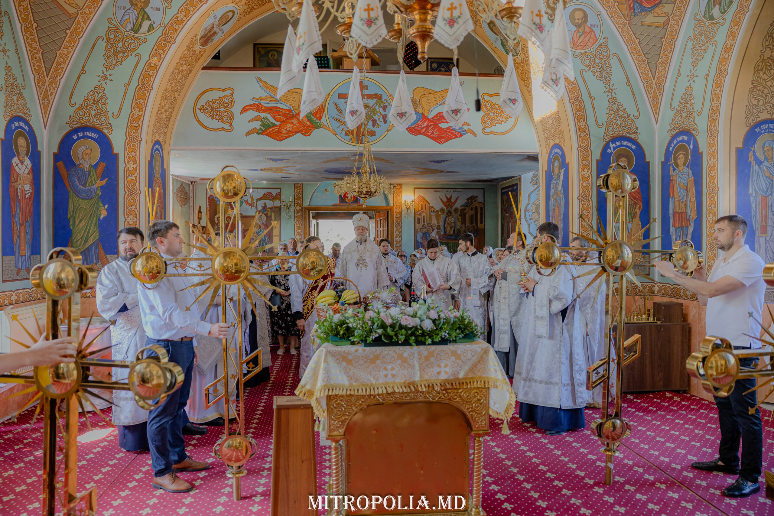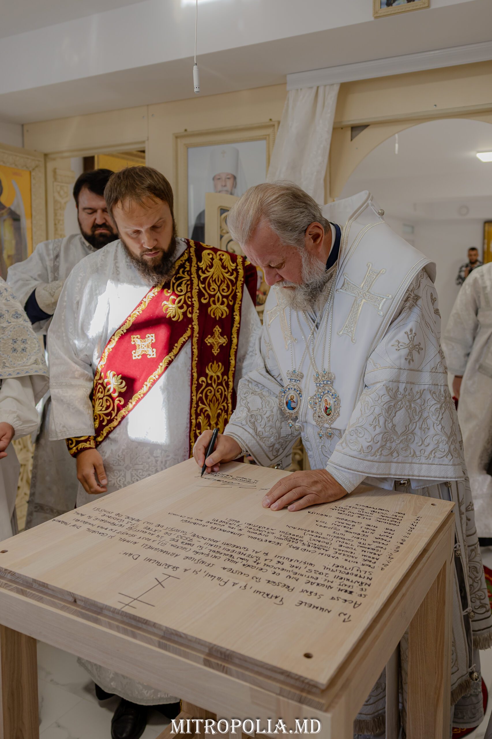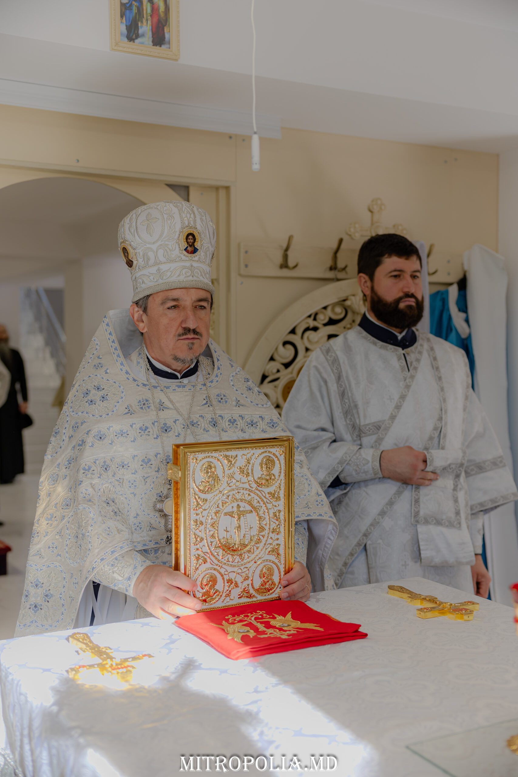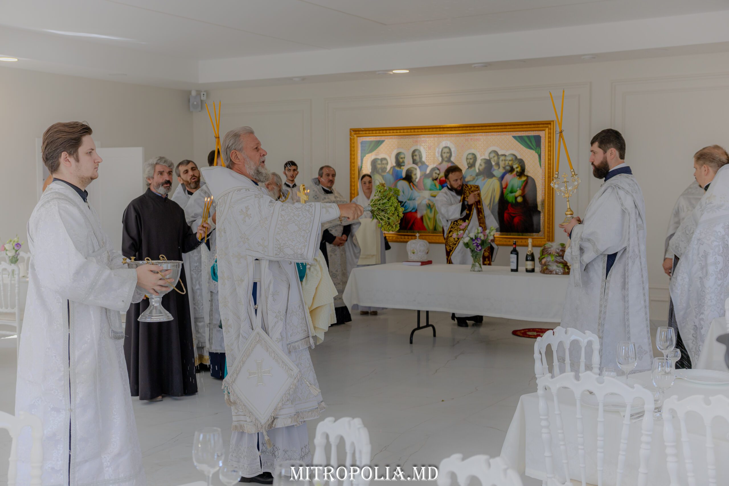 Serviciul divin a început cu săvârșirea rânduielii sfințirii Sfintei Mese, moment deosebit care marchează deplin sfântul locaș pentru slujirea liturgică.