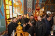 La Sfânta Liturghie, din soborul de preoți au făcut parte: Prot. mitr. Vadim Cheibaș, Secretarul Mitropoliei Moldovei, PC Arhimandrit Vladimir (Poia), Starețul Mănăstirii „Adormirea Maicii Domnului” din Butuceni, PC Arhimandrit Irinarh (Costru), Starețul Mănăstirii „Adormirea Maicii Domnului” din Țigănești și un sobor de slujitori.