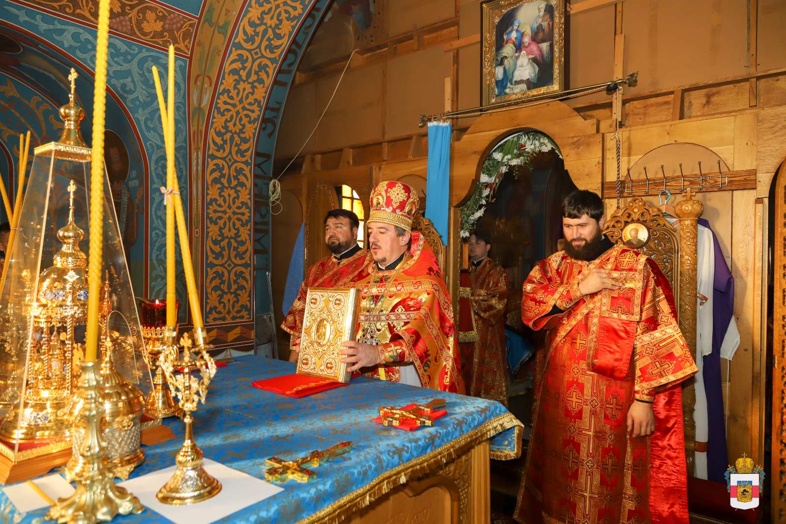 La Sfânta Liturghie, din soborul de preoți au făcut parte: Prot. mitr. Vadim Cheibaș, Secretarul Mitropoliei Moldovei, PC Arhimandrit Vladimir (Poia), Starețul Mănăstirii „Adormirea Maicii Domnului” din Butuceni, PC Arhimandrit Irinarh (Costru), Starețul Mănăstirii „Adormirea Maicii Domnului” din Țigănești și un sobor de slujitori.