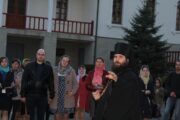 Ajunşi la mănăstire, pelerinii s-au rugat la Slujba de Priveghere oficiată de arhimandritul Iov (Cristea), după care părintele le-a prezentat tinerilor istoricul mănăstirii şi le-a vorbit despre viaţa monahală.