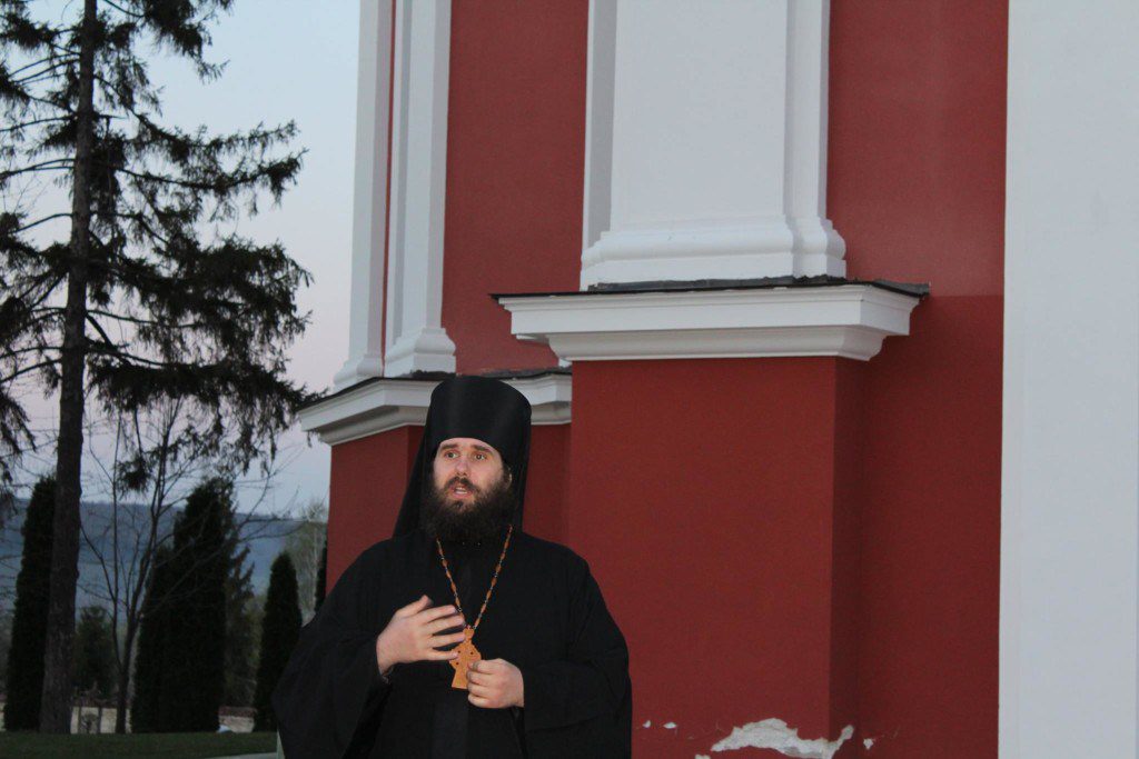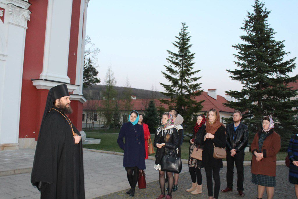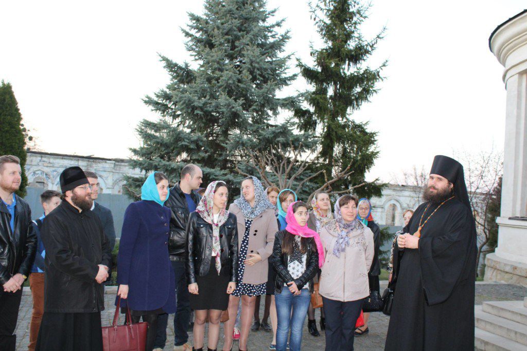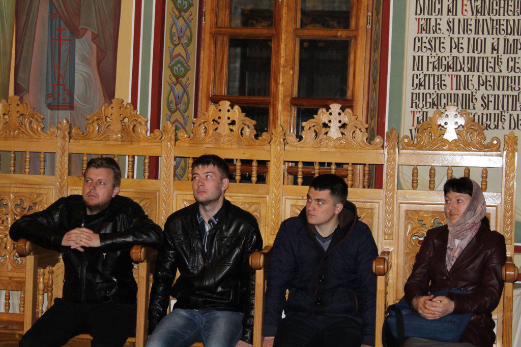 Ajunşi la mănăstire, pelerinii s-au rugat la Slujba de Priveghere oficiată de arhimandritul Iov (Cristea), după care părintele le-a prezentat tinerilor istoricul mănăstirii şi le-a vorbit despre viaţa monahală.