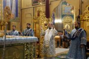 Protoiereul mitrofor Dr. Vadim Cheibaș, Secretar al Mitropoliei Moldovei, al Sinodului BOM și Chelar al Catedralei Mitropolitane împreună cu soborul de preoți și diaconi i-au fost alături Întâistătătorului, în comuniune liturgică la această mare sărbătoare mariologică.