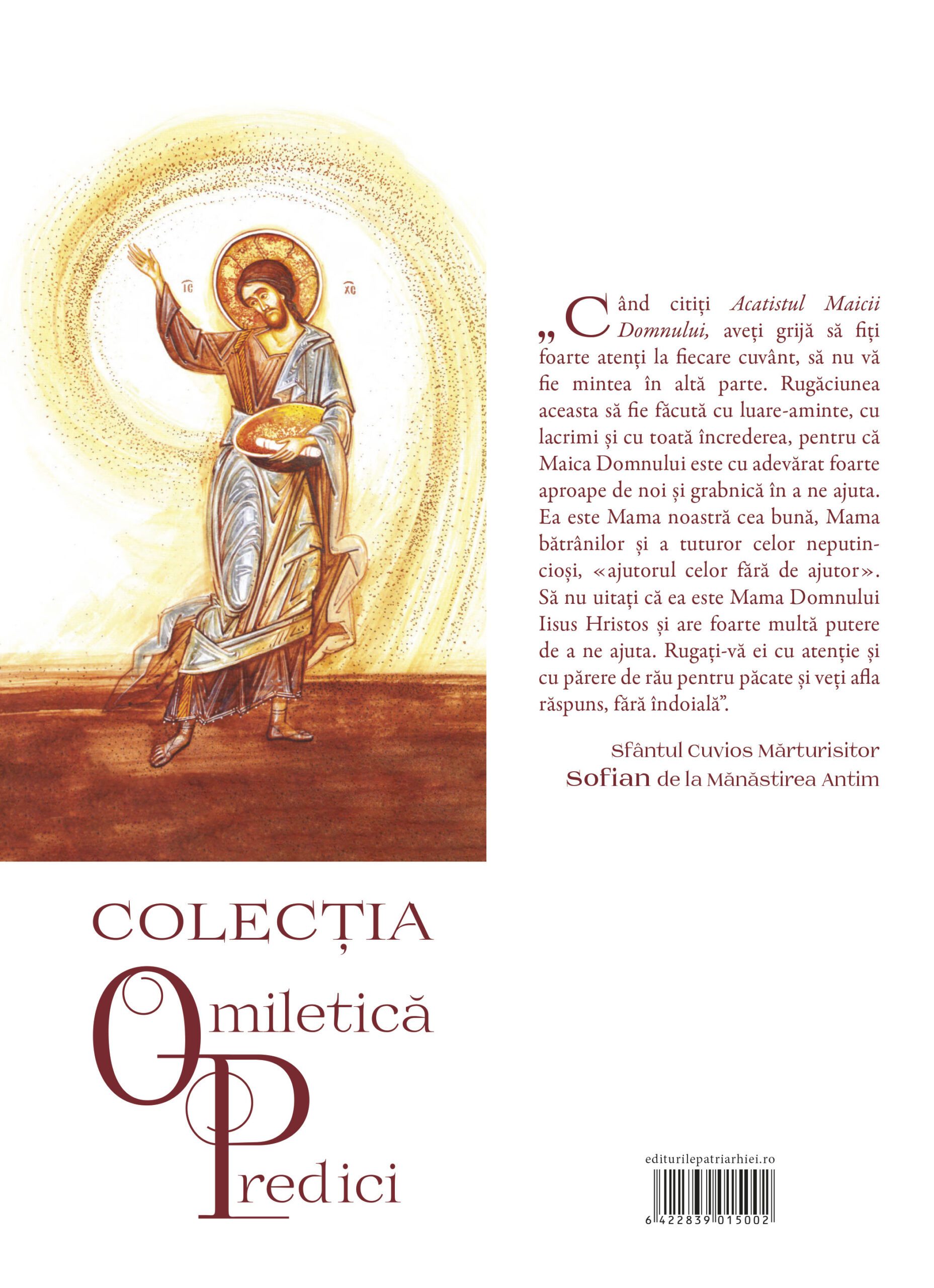 La pangarul cu cărți al magazinului bisericesc din curtea Mitropoliei (str. București, 119) este disponibil volumul „Predici și Cuvântări” al Sfântului Cuvios Mărturisitor Sofian Boghiu de la Antim.