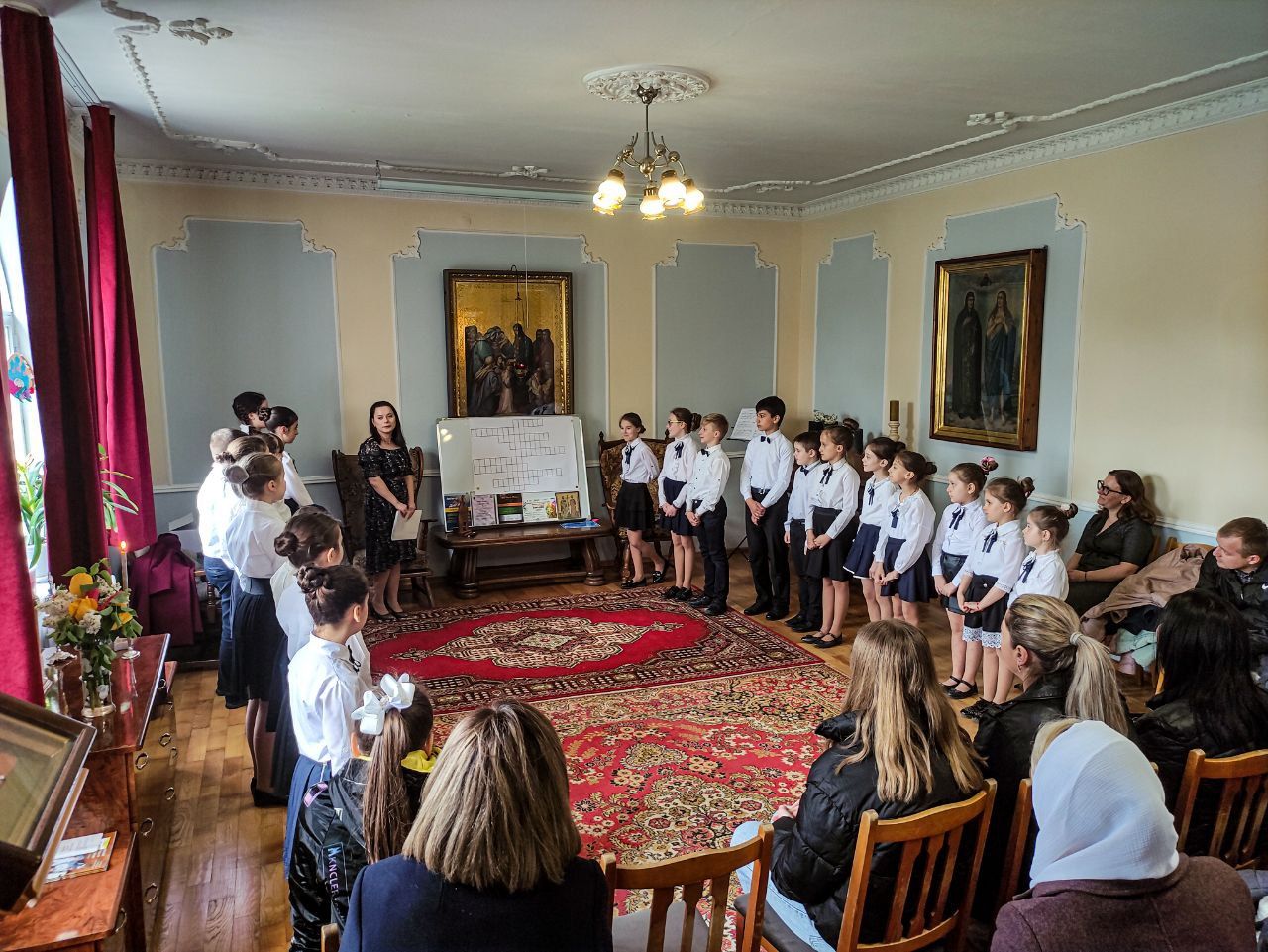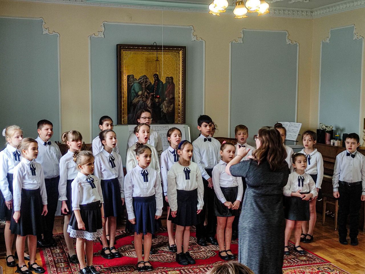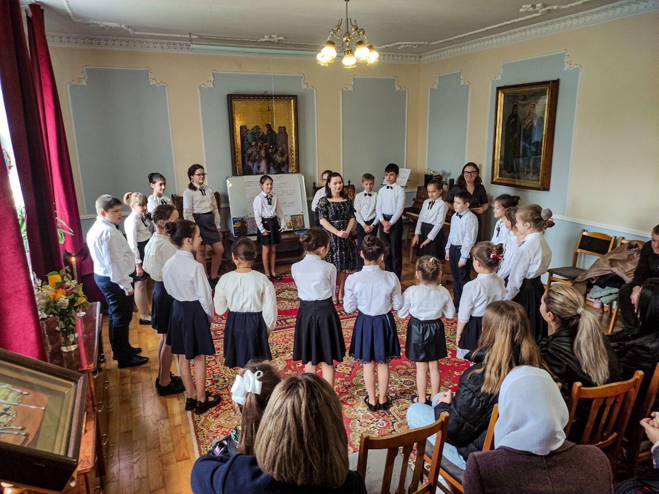 În acest sens, Corul de copii „Theotokos”, condus de Dna Anghelina Usatîi a interpretat în sala de conferințe a centrului un buchet de colinde pascale dedicat zilei femeilor mironosiţe.