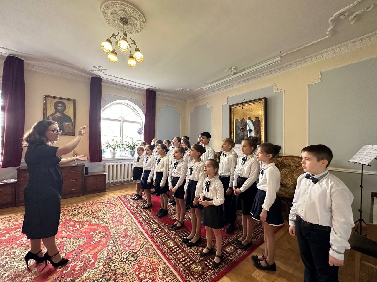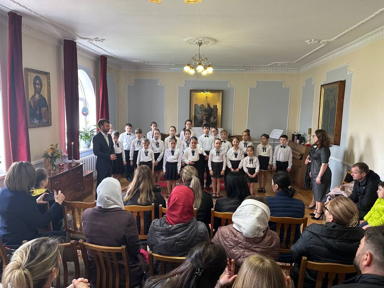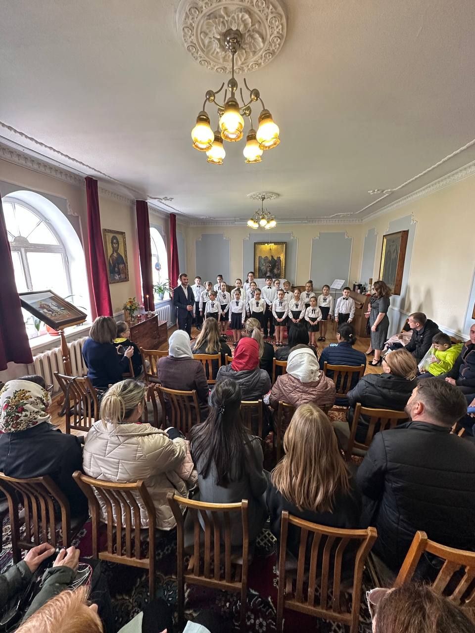 În acest sens, Corul de copii „Theotokos”, condus de Dna Anghelina Usatîi a interpretat în sala de conferințe a centrului un buchet de colinde pascale dedicat zilei femeilor mironosiţe.