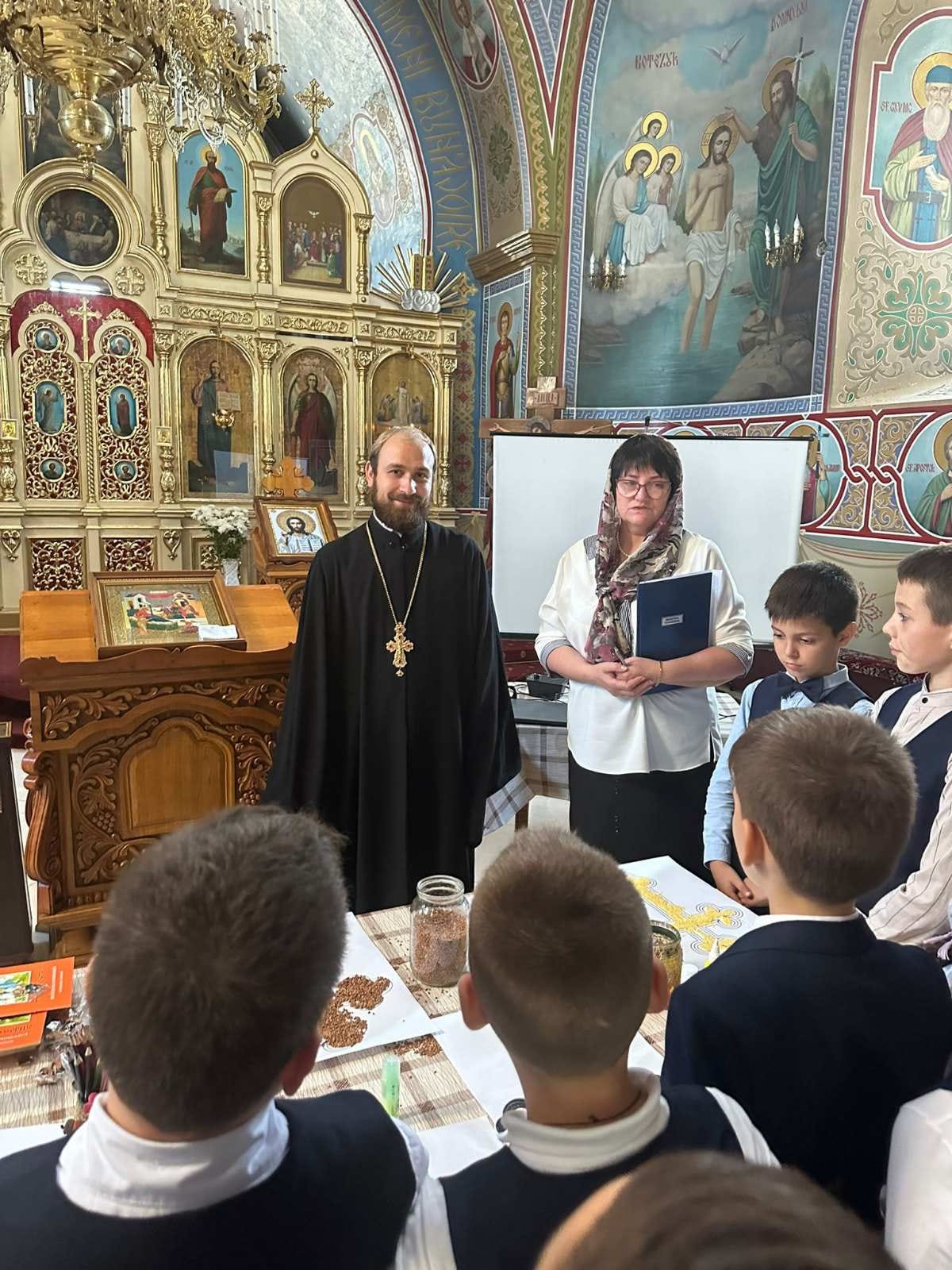 În ajunul sărbătorii Înălțarea Sfintei Cruci, cu binecuvântarea Preasfințitului Ioan de Soroca, elevii clasei a III-a „B” din cadrul Instituției Publice Liceul Teoretic „Petru Rareș” din municipiul Soroca, dirijați de învățătoarea Iazinschi Valentina și profesorul de religie, preotul Liviu Cernei, au participat la o oră publică transdisciplinară cu genericul „La început a fost cuvântul… ”, organizată la biserica „Sfântul Mare Mucenic Dimitrie” din Soroca.