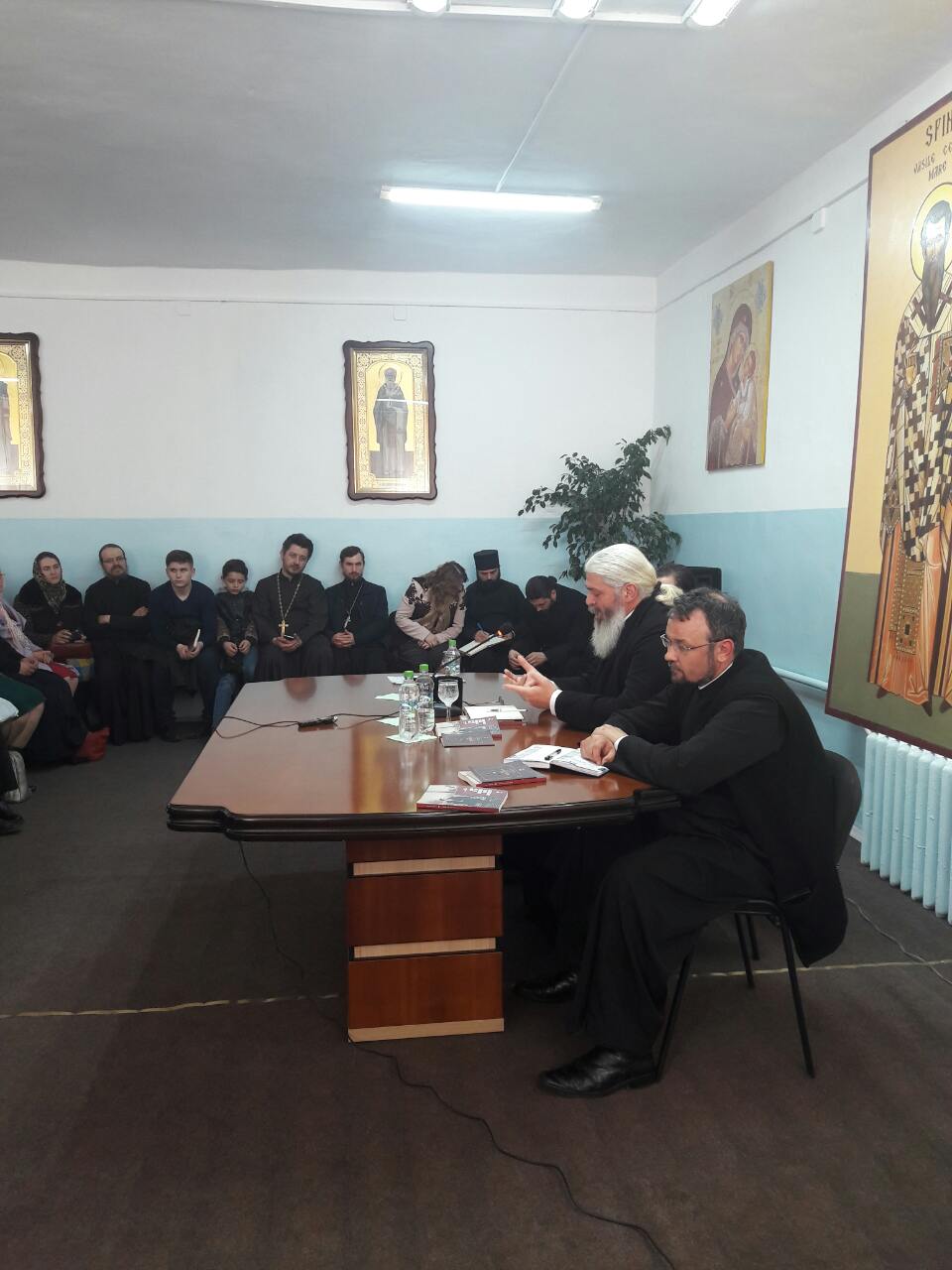 Împreună cu părintele au fost prezenţi oaspeţi de la editura Eremit, şi Domnul Alexandru Zagnat, cel care a stat la baza înfiinţării Centrului de Misiune „Cuviosul Anatolie Tihai”. Una din prirogativele care era în acest Centru de Misiune, erau să se organizeze conferinţe. Aceste conferinţe ne dau deschiderea tuturor de a vedea, de a găsi răspunsuri, de a căuta mai mult ceea ce ne dorim noi. Prin acest Departament Misionar care face parte din cadrul Academiei de Teologie Ortodoxă din Moldova, a fost semnat un protocol cu editura Eremit, fondată în România, care are ca scop promovarea valorilor spirituale ortodoxe. Această editură se ocupă cu traducerea scrierilor a părinţilor ruşi, şi fiecare carte care se va edita, va fi cadonat cîte un volum pentru biblioteca intituţiei.