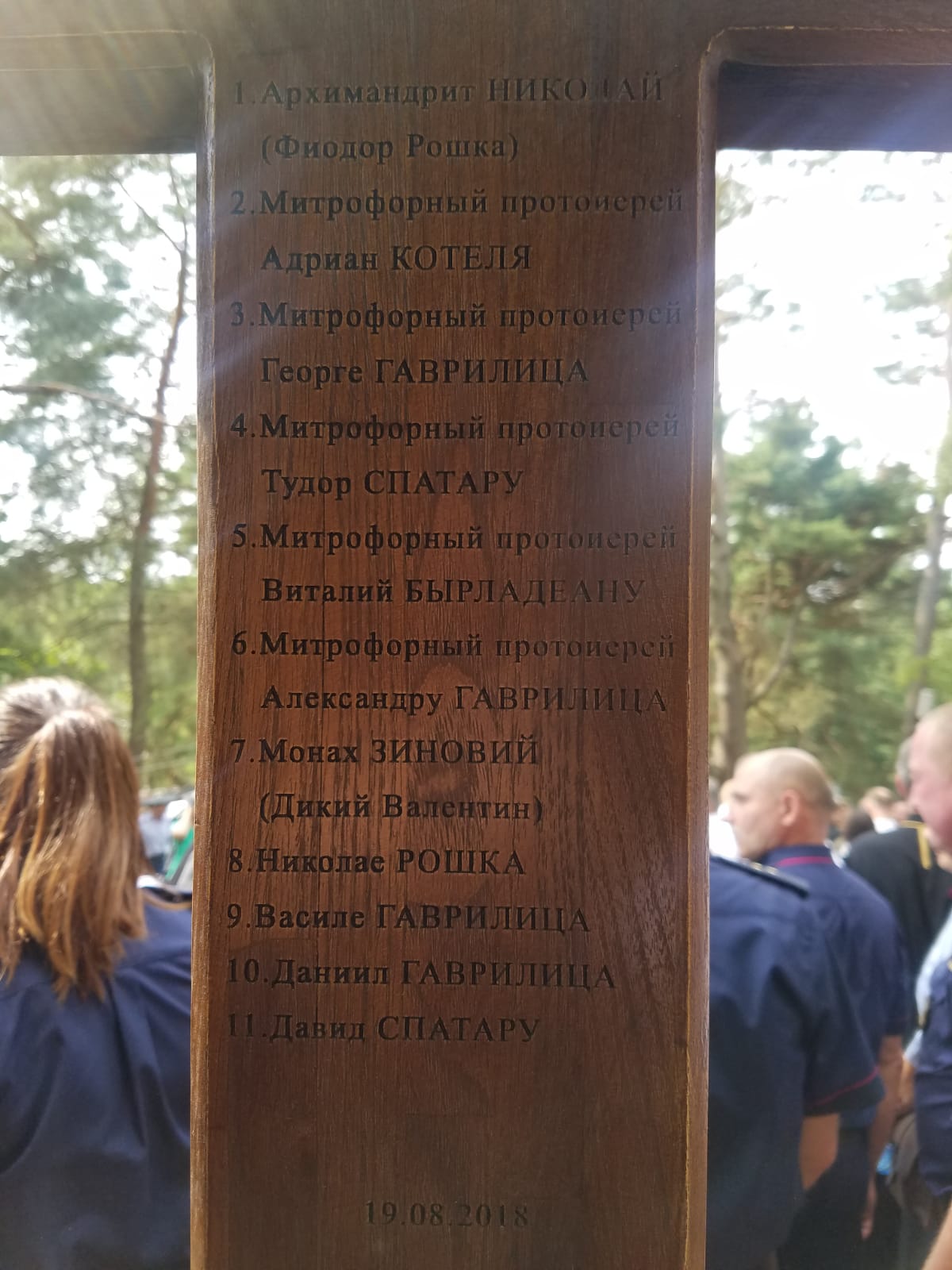 Din grupul pelerinilor moldoveni au făcut parte PC Arhimandrit Nicolae (Roșca), președinte al Sectorului Sinodal Activitate Pastorală în Ministerul Afacerilor Interne, Ministerul Apărării și Organele de Drept, Prot. mitr. Adrian Cotelea, Prot. mitr. Gheorghe Gavrilița, Prot. mitr. Teodor Spataru, Prot. mitr. Vitalie Bîrlădeanu, Prot. mitr. Alexandru Gavriliță, monahul Zinovie (Dichii) și alți membri ai Sectorului Sinodal Activitate Pastorală în Ministerul Afacerilor Interne, Ministerul Apărării și Organele de Drept.