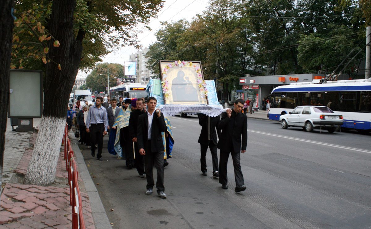 Cu binecuvântarea și la inițiativa Înalt Prea Sfințitului Mitropolit Vladimir, în dimineața zilei, un grup de credincioși și slujitori în frunte cu Prot. Mitr. Teodor Roșca, duhovnicul-administrator al Mănăstirii Ciuflea și Arhim. Ioan (Moșneguțu), starețul mănăstirii Hârbovăț și secretar al Episcopiei de Ungheni și Nisporeni, au pornit de la așezământul monahal din Chișinău spre Ungheni, într-o procesiune cu icoana făcătoare de minuni a Maicii Domnului de la Hârbovăț.
