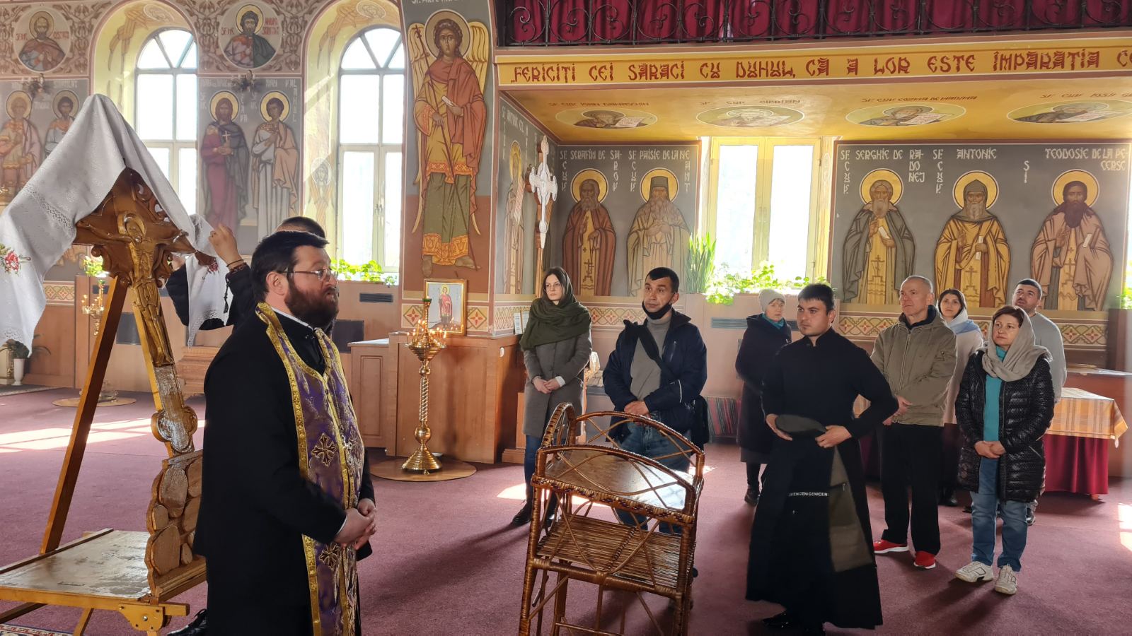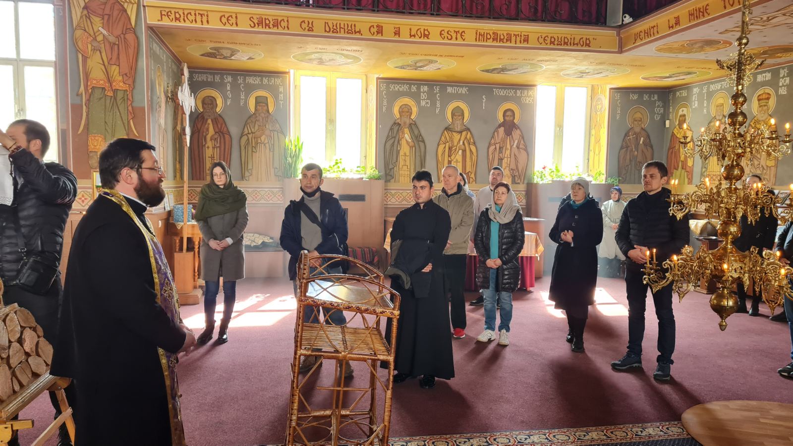 În dangătul clopotelor călătorii au fost primiți la Mănăstirea Sireți, fiind binecuvântați și salutați de către părintele stareț Arhim. Porfirie (Dobre).