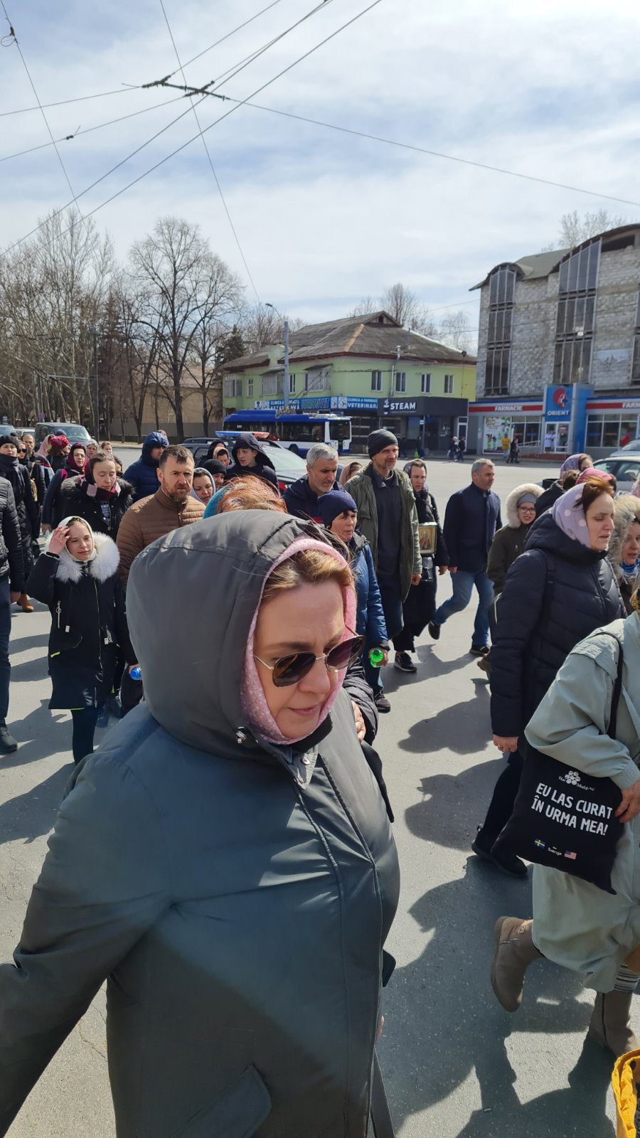 La ieșirea din capitală s-au alăturat credincioși din satele Dumbrava, Cojușna și or. Vatra.
