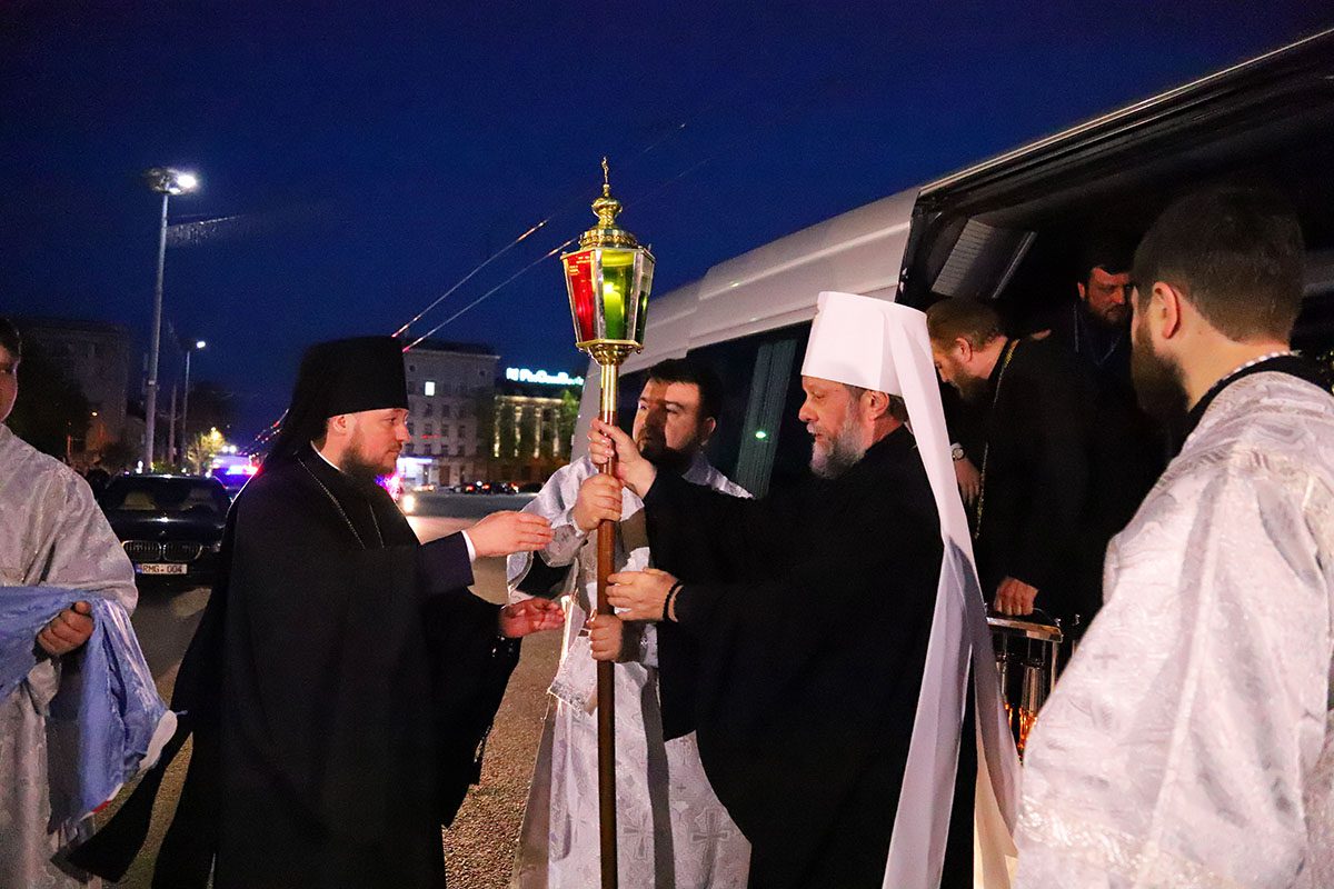 În seara zilei de sâmbătă, delegația Bisericii Ortodoxe din Moldova, în frunte cu Înaltpreasfințitul Părinte Mitropolit Vladimir, care a mers la Ierusalim pentru a lua Sfânta Lumină, a fost întâmpinată cu deosebită bucurie de către Episcopii vicari: PS Ioan al Sorocii și PS Siluan al Orheiului, Președintele RM, dl Igor Dodon, precum și numeroși preoți și credincioși veniți din toate colțurile republicii.