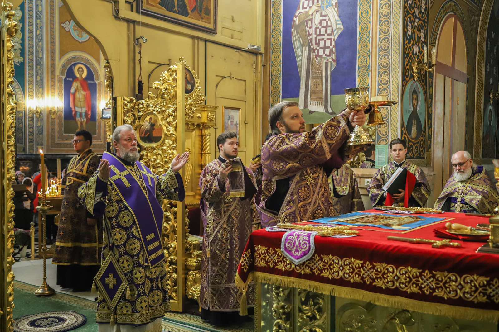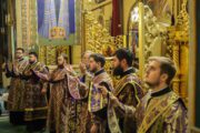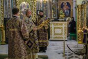 Înaltpreasfinției Sale i-au coliturghisit: Prot mitr. Vadim Cheibaș, Secretarul mitropolitan și eclesiarh al Catedralei mitropolitane, împreună cu soborul de preoți și diaconi.