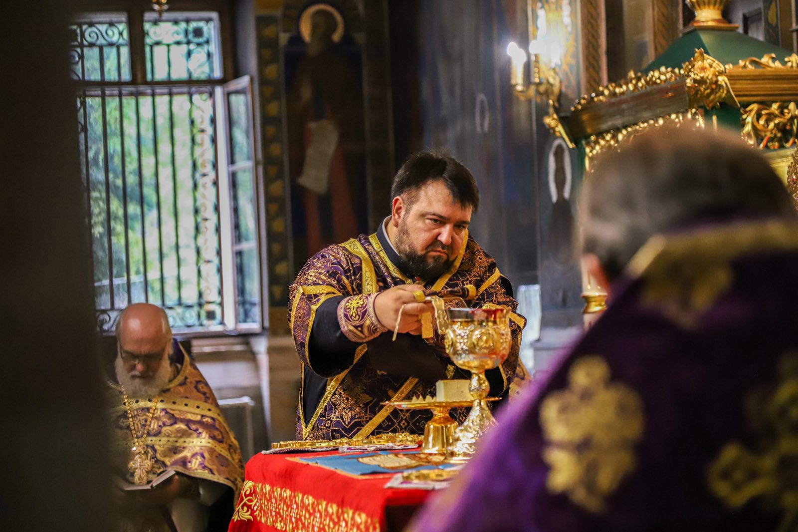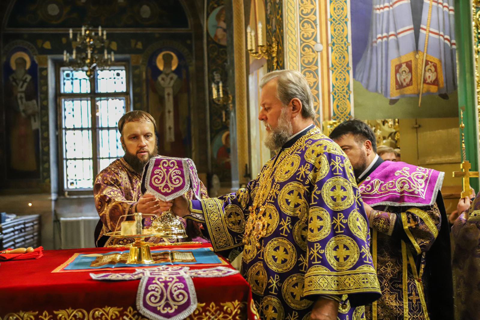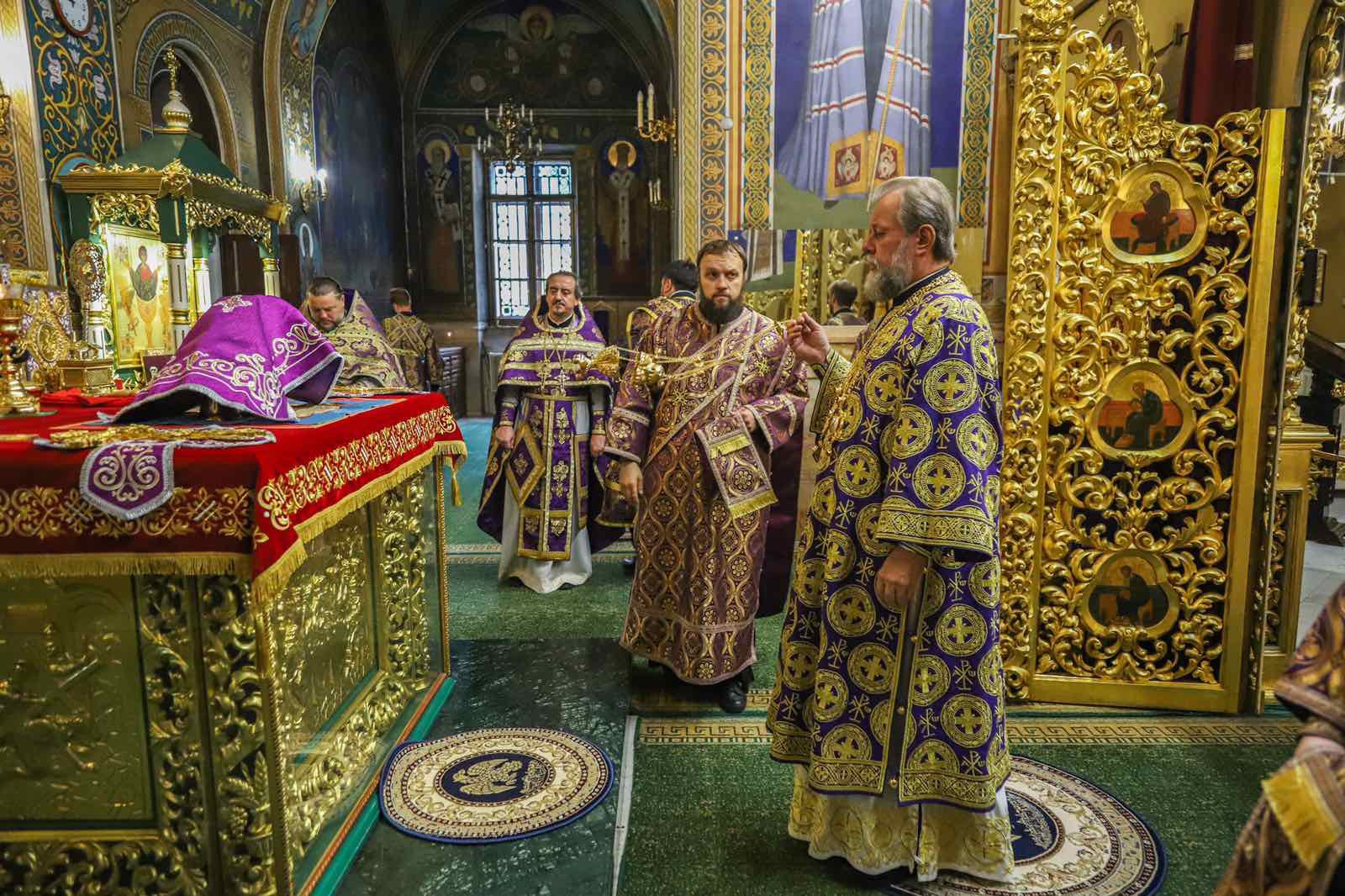 Înaltpreasfinției Sale i-au coliturghisit: Prot mitr. Vadim Cheibaș, Secretarul mitropolitan și eclesiarh al Catedralei mitropolitane, împreună cu soborul de preoți și diaconi.