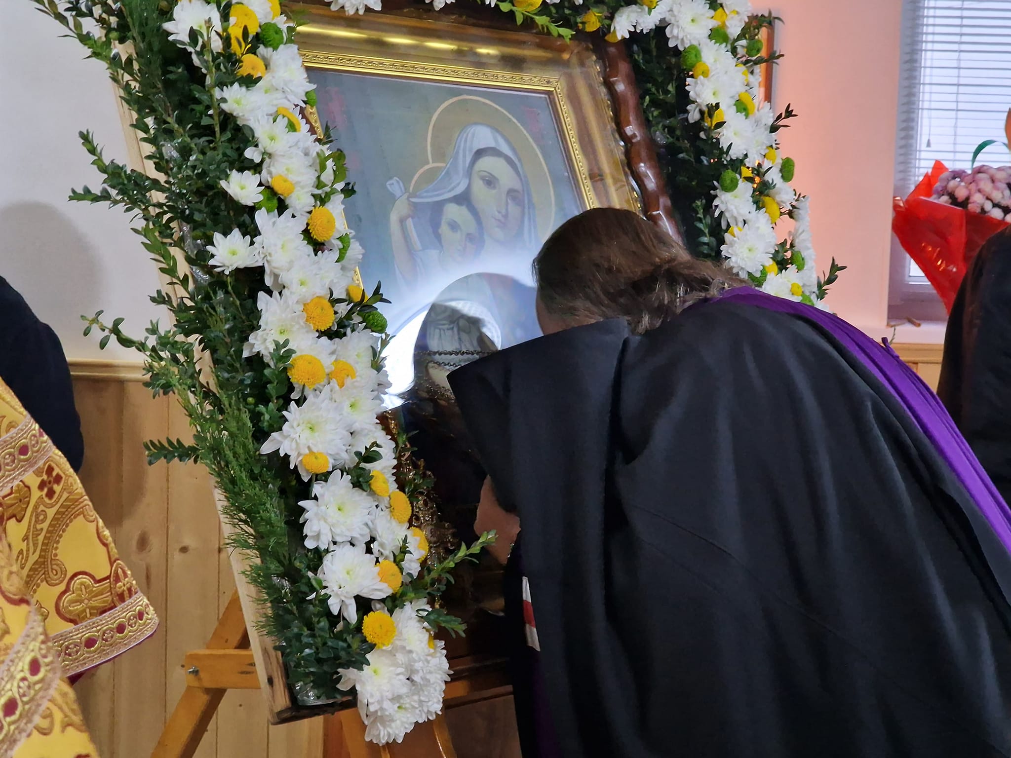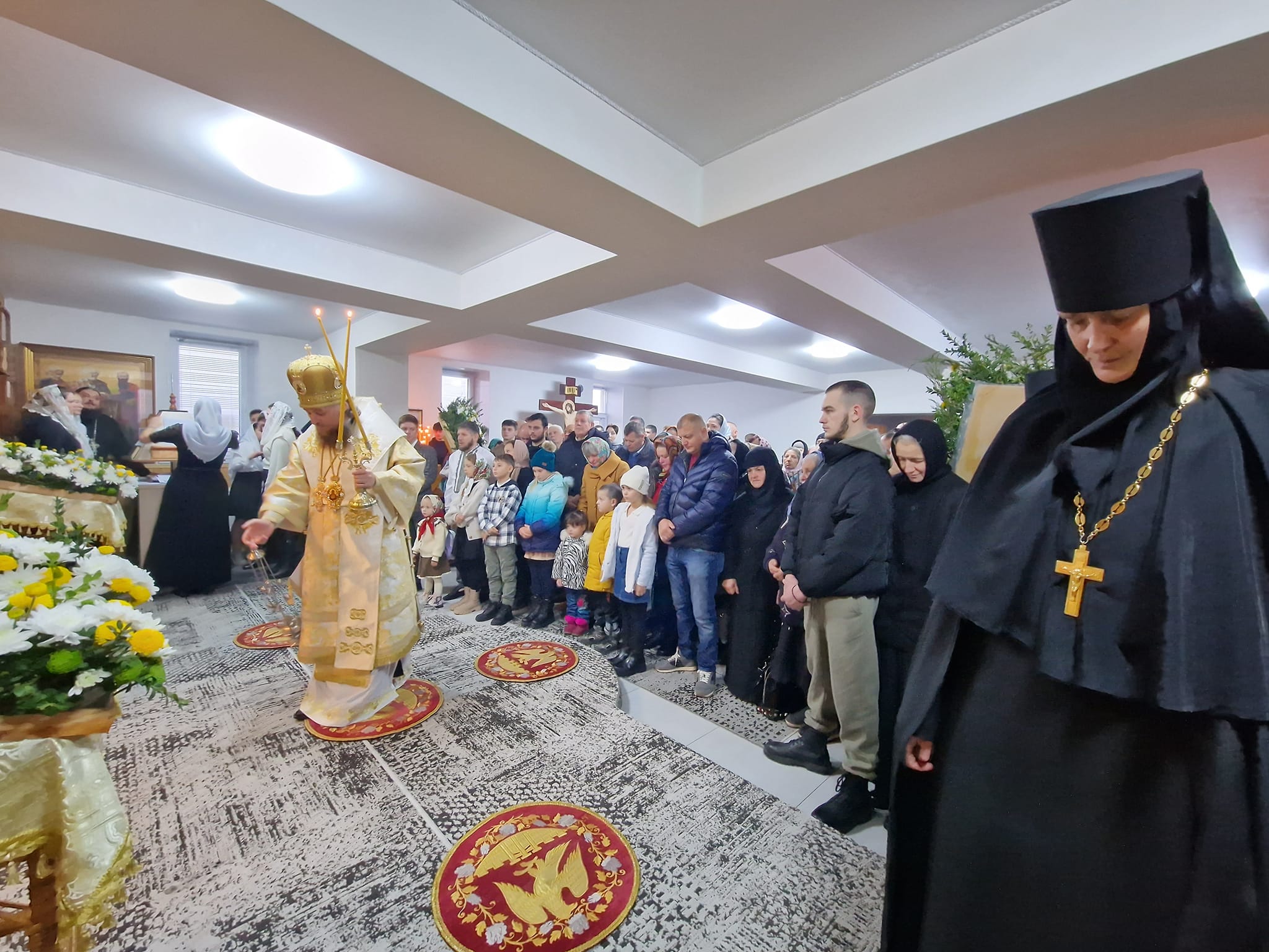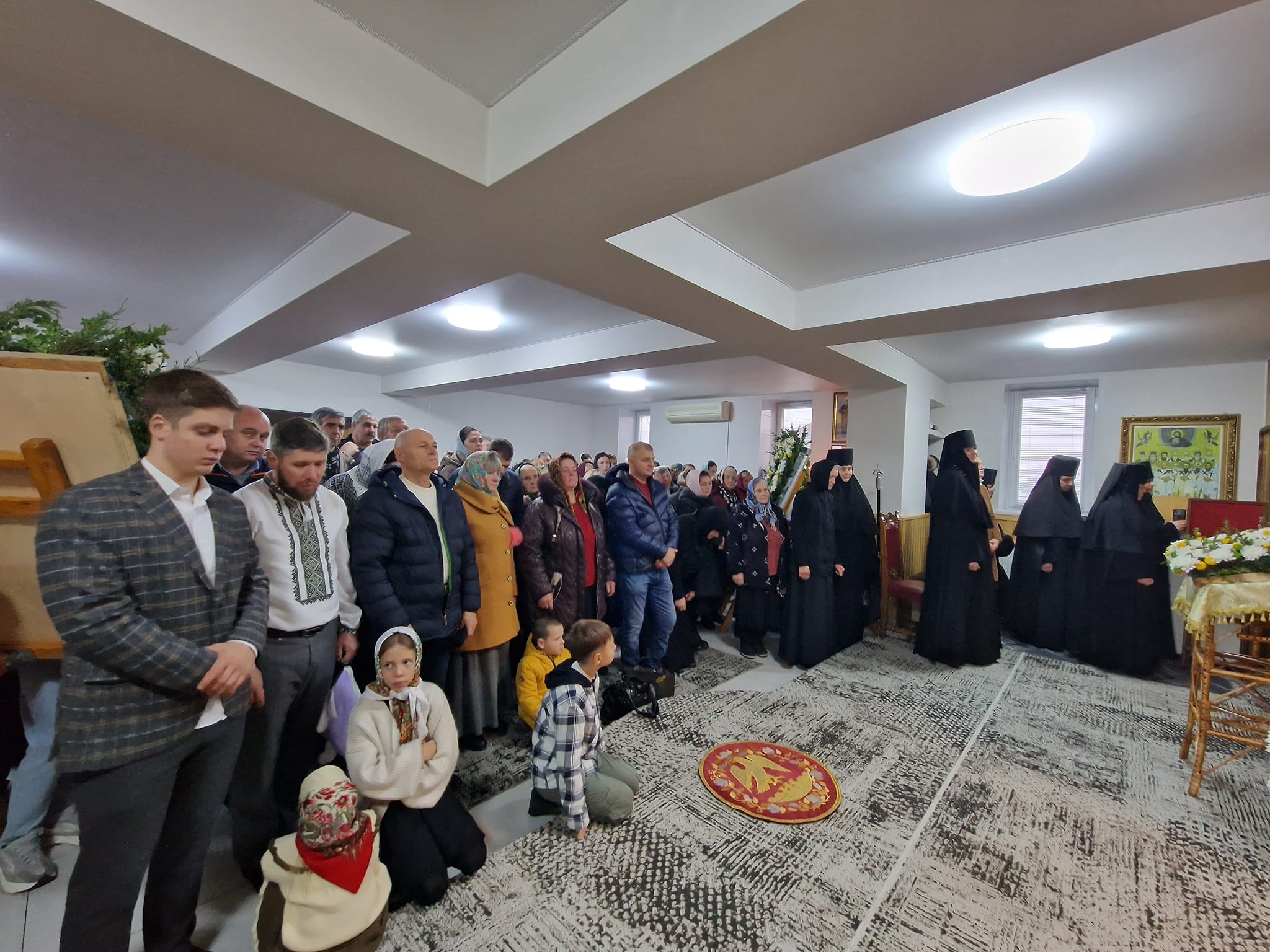 După încheierea slujbei, maica egumenă Vasa, a relatat despre lucrările întreprinse până la etapa curentă, în vederea construirii bisericii centrale a așezământului monahal cu hramul „Chipul Domnului nelucrat de mână”.