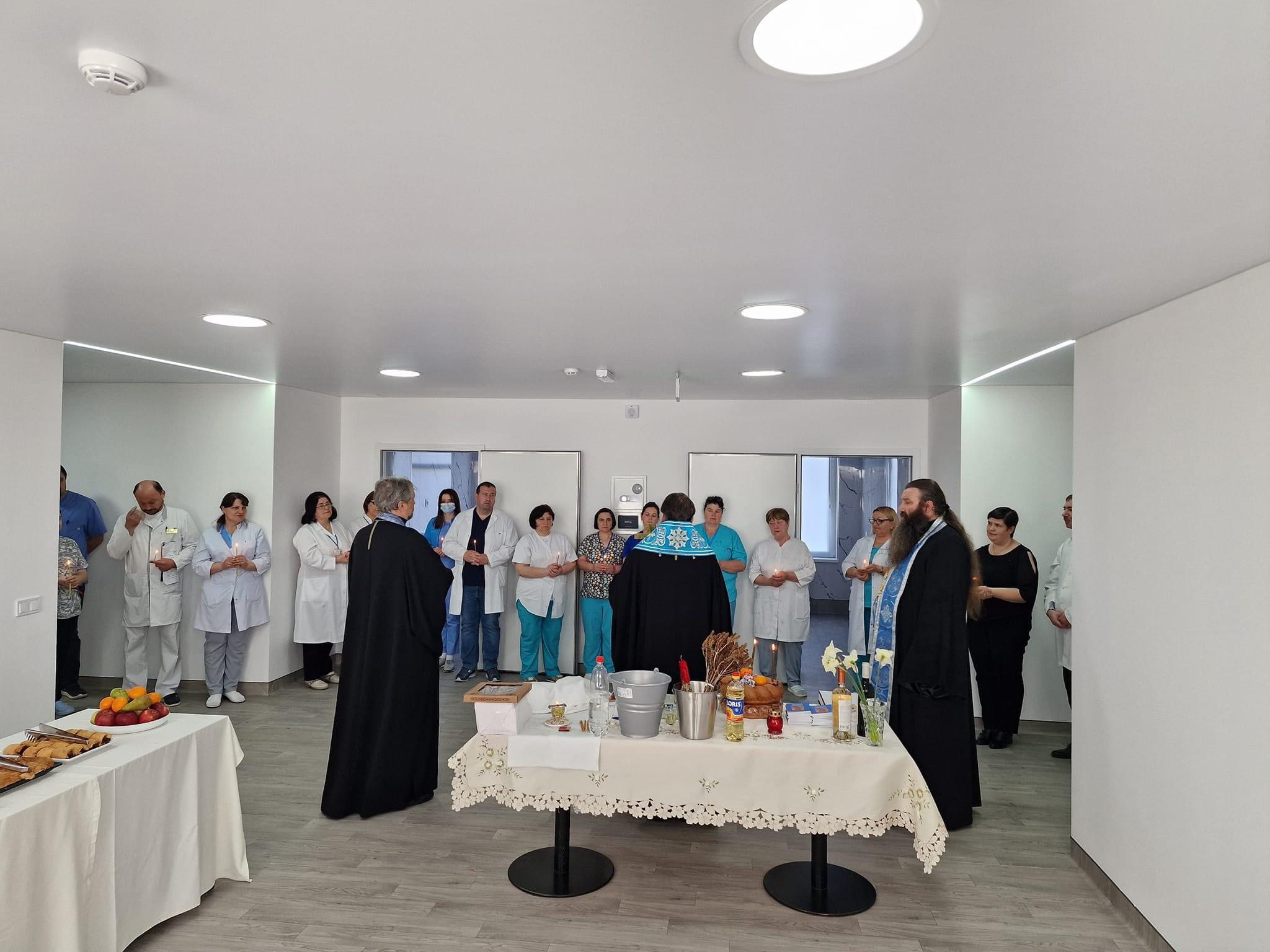 În cadrul vizitei ierarhul a săvârșit rânduiala sfințirii spațiilor destinate Secției Chirurgie Nou-născuți.