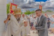 În dimineața zilei, Ierarhul Orheiului a fost întâmpinat de către Protoiereul Vitalie Levițchi, parohul bisericii. Înainte de începerea Sfintei Liturghii, Preasfinția Sa a citit rugăciunea pentru reînnoirea sfântului locaș.
