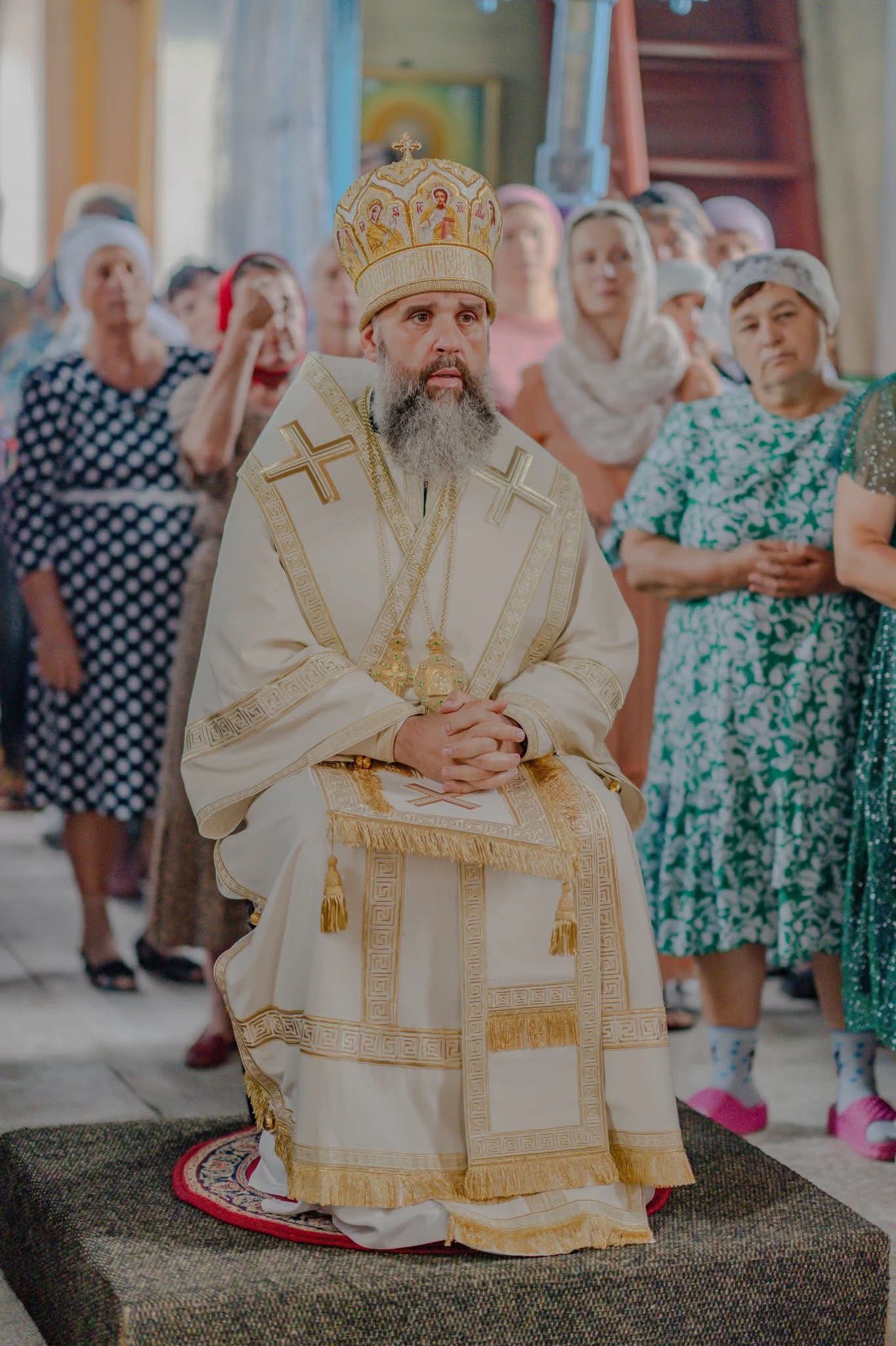 În dimineața zilei, Ierarhul Orheiului a fost întâmpinat de către Protoiereul Vitalie Levițchi, parohul bisericii. Înainte de începerea Sfintei Liturghii, Preasfinția Sa a citit rugăciunea pentru reînnoirea sfântului locaș.
