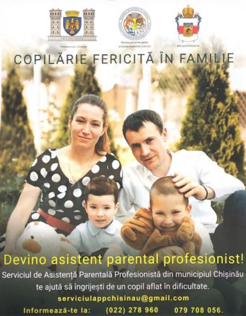În prezent, în cadrul Serviciului Asistență Parentală Profesionistă sunt angajate 33 de persoane care educă 36 de copii. În total, de aceste servicii au beneficiat 216 minori. Totodată, la centrele de plasament din subordinea Direcției generale pentru protecția drepturilor copilului se află 124 de copii, care așteaptă să fie încadrați în familii. Fiecare copil, merită să aibă parte de căldura unei familii!
