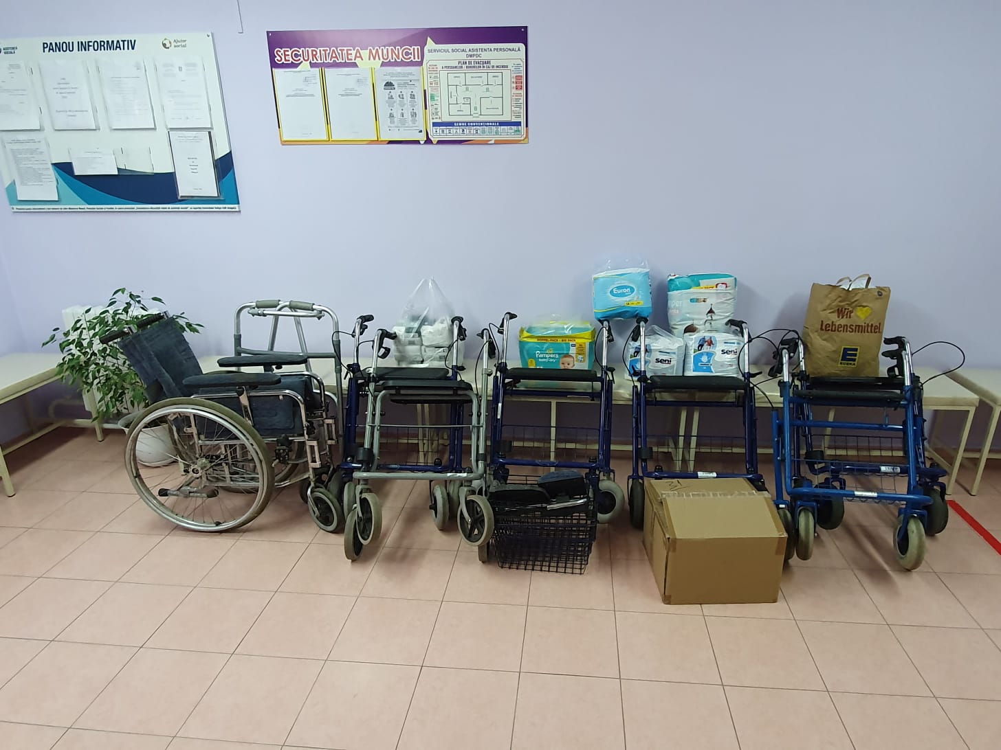 Acestea au constat în: Pamperși pentru copii nr. 1 – 19 bucăți, nr. 2 – 109 bucăți, nr. 3 – 103 bucăți, nr. 6 – 25 bucăți; Pamperși-chiloței pentru maturi mărimea M – 20 bucăți, mărimea L – 14 bucăți; Absorbante urologice – 90 bucăți; Pungi colector pentru urină – 210 bucăți, 6 Rolatoare ortopedice, 1 Dispozitiv de sprijin și 1 Cărucior.