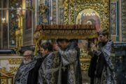 După procesiune, credincioşii au trecut pe sub Sfântul Epitaf la momentul reintrării în Catedrală, pentru continuarea slujbei.