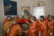 În timpul Liturghiei, protoiereul Leonid Condrea, parohul bisericii a fost decorat cu dreptul de a sluji Sfânta Liturghie cu Ușile Împărătești deschise până la Heruvic, iar preotul Vladimir Condrea, parohul bisericii „Sfântul Mare Mucenic Gheorghe” din satul Căzănești, același raion a fost decorat cu dreptul de a purta cruce de aur și camilafcă.