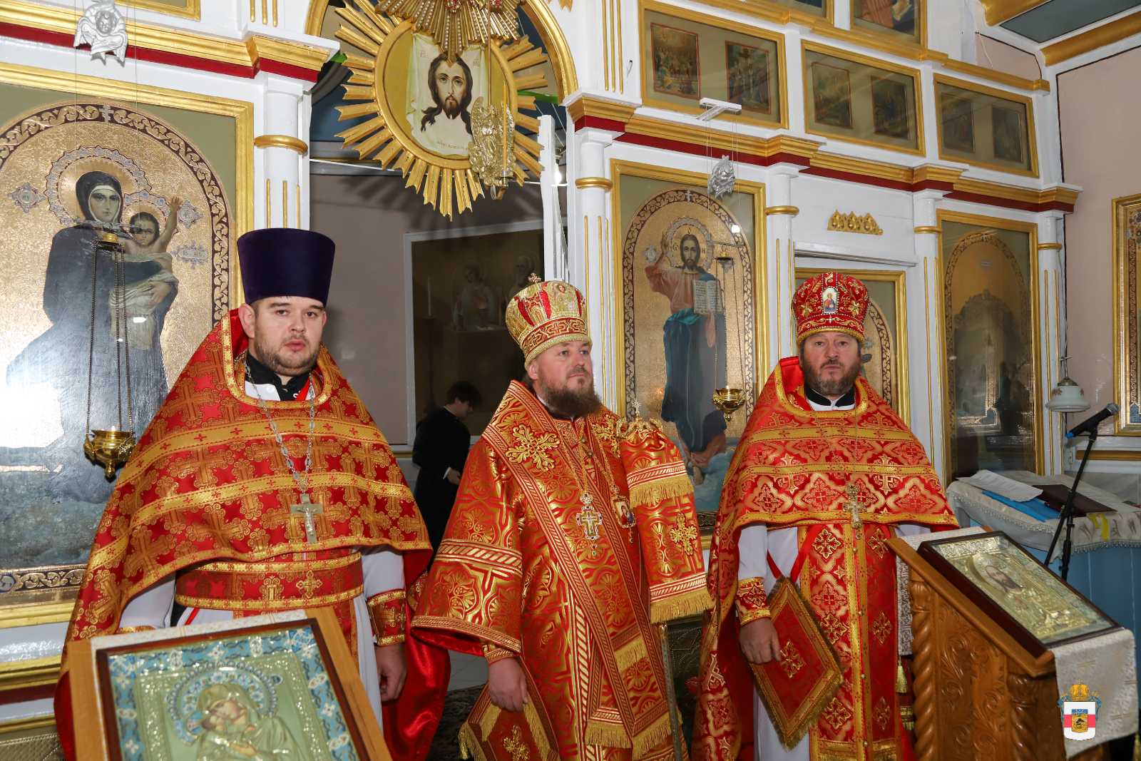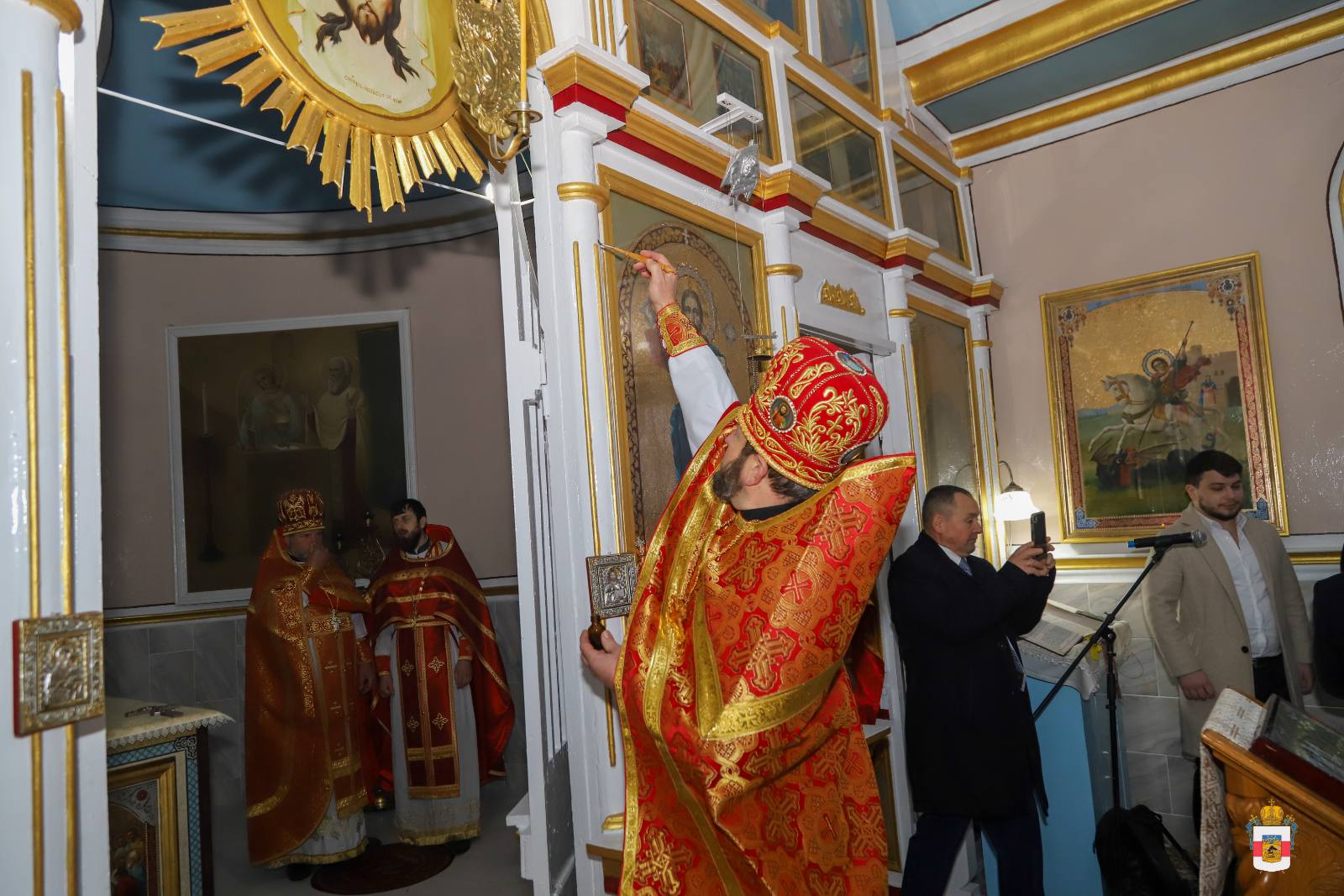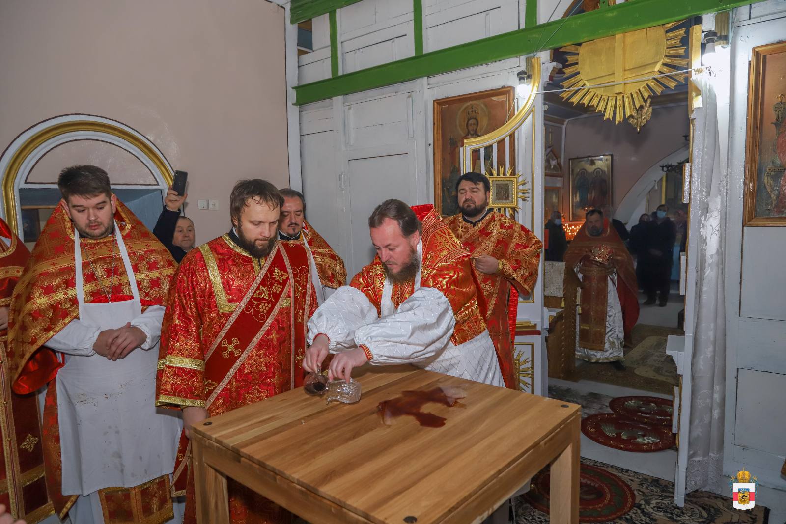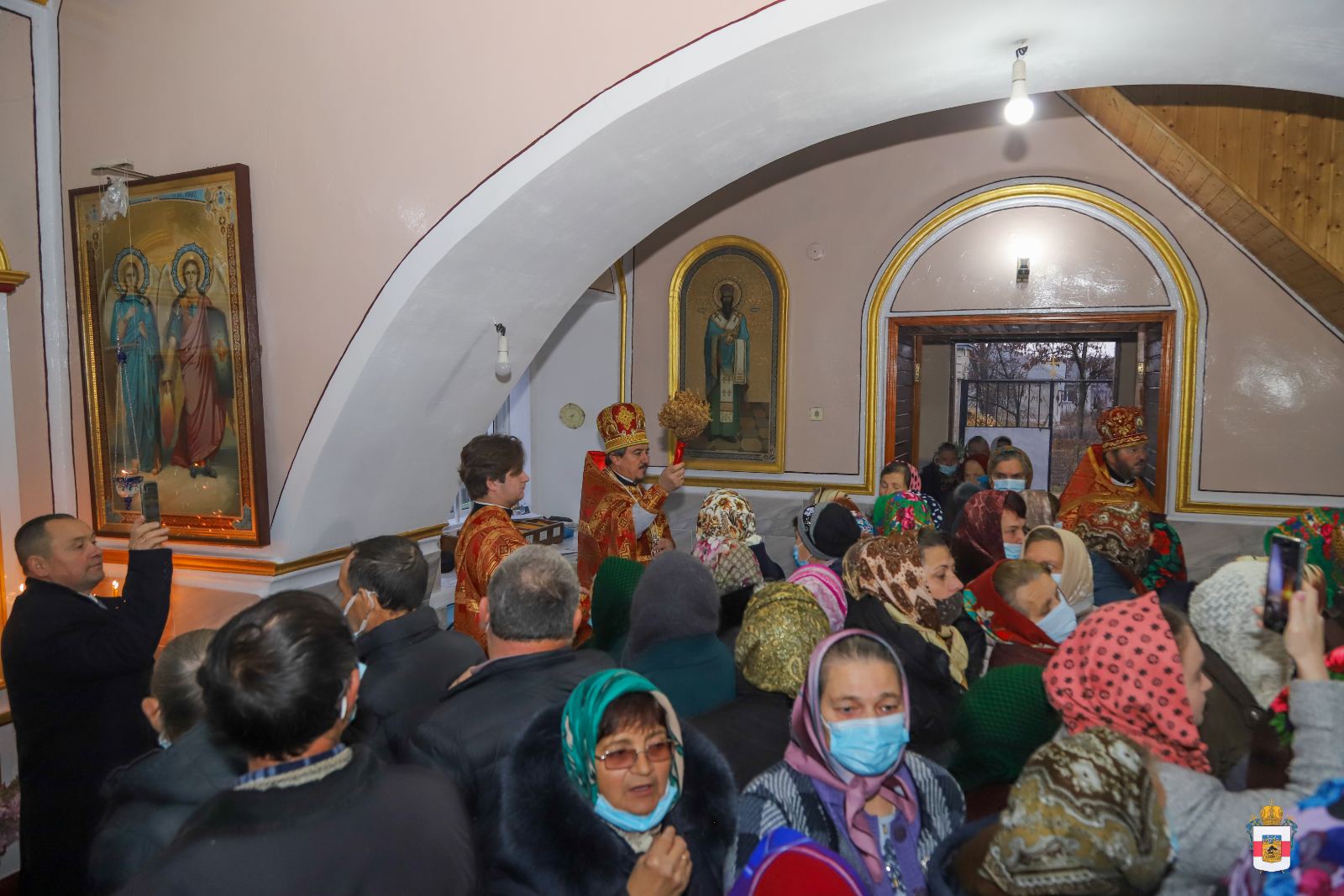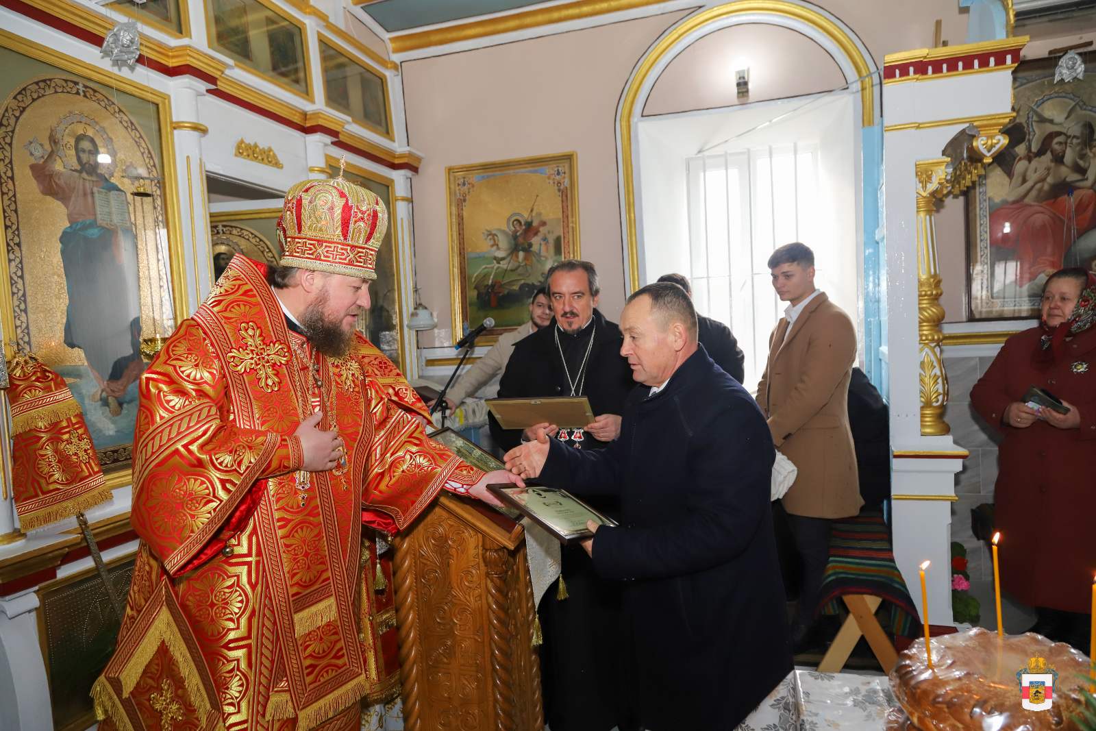 În timpul Liturghiei, protoiereul Leonid Condrea, parohul bisericii a fost decorat cu dreptul de a sluji Sfânta Liturghie cu Ușile Împărătești deschise până la Heruvic, iar preotul Vladimir Condrea, parohul bisericii „Sfântul Mare Mucenic Gheorghe” din satul Căzănești, același raion a fost decorat cu dreptul de a purta cruce de aur și camilafcă.