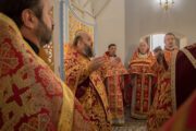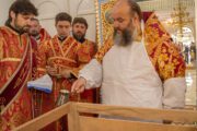 După întâmpinarea arhiereului a urmat slujba de sfințire a noului Prestol și a bisericii, respectiv spălarea și ungerea Prestolului și toate cele prescrise în rânduiala slujbei de târnosire.