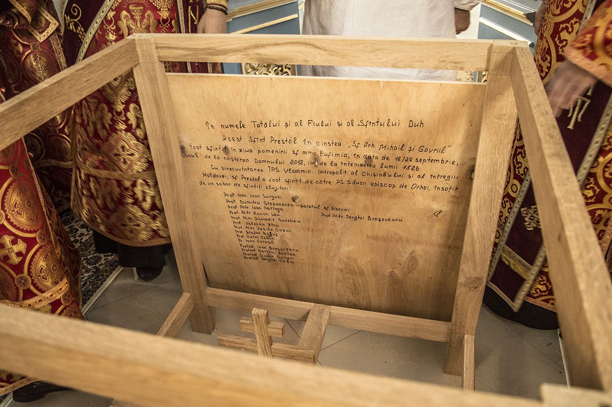 După rânduiala slujbei de sfințire, PS Episcop Siluan a săvârșit Sfânta și Dumnezeiasca Liturghie, fiind înconjurat de soborul slujitorilor veniți din parohiile învecinate din cadrul Vicariatului de Orhei, dar și din alte Protopopiate.