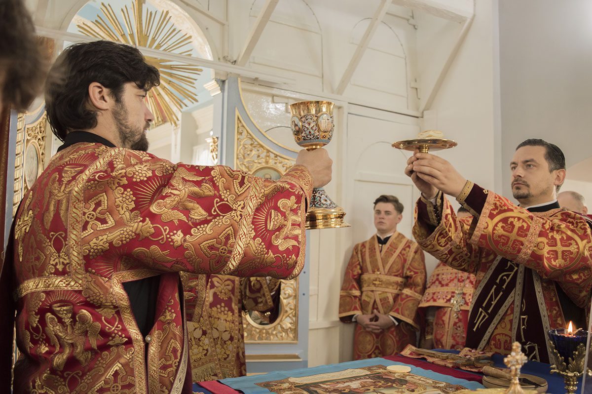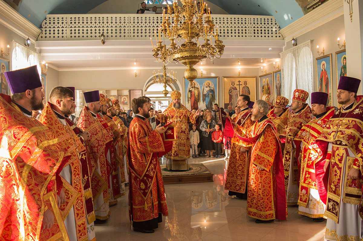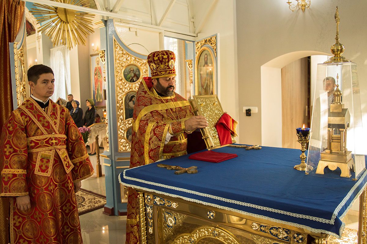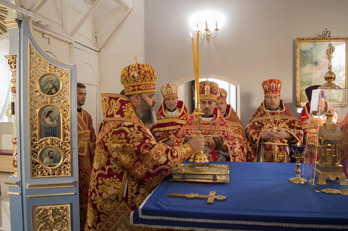 După întâmpinarea arhiereului a urmat slujba de sfințire a noului Prestol și a bisericii, respectiv spălarea și ungerea Prestolului și toate cele prescrise în rânduiala slujbei de târnosire.