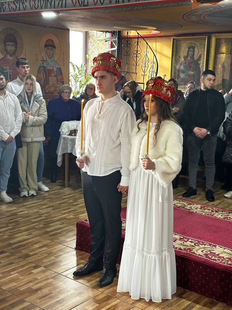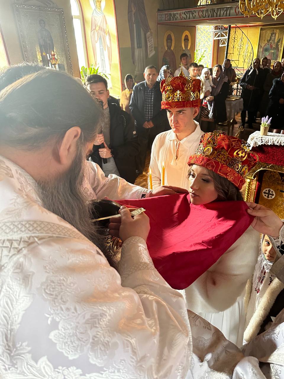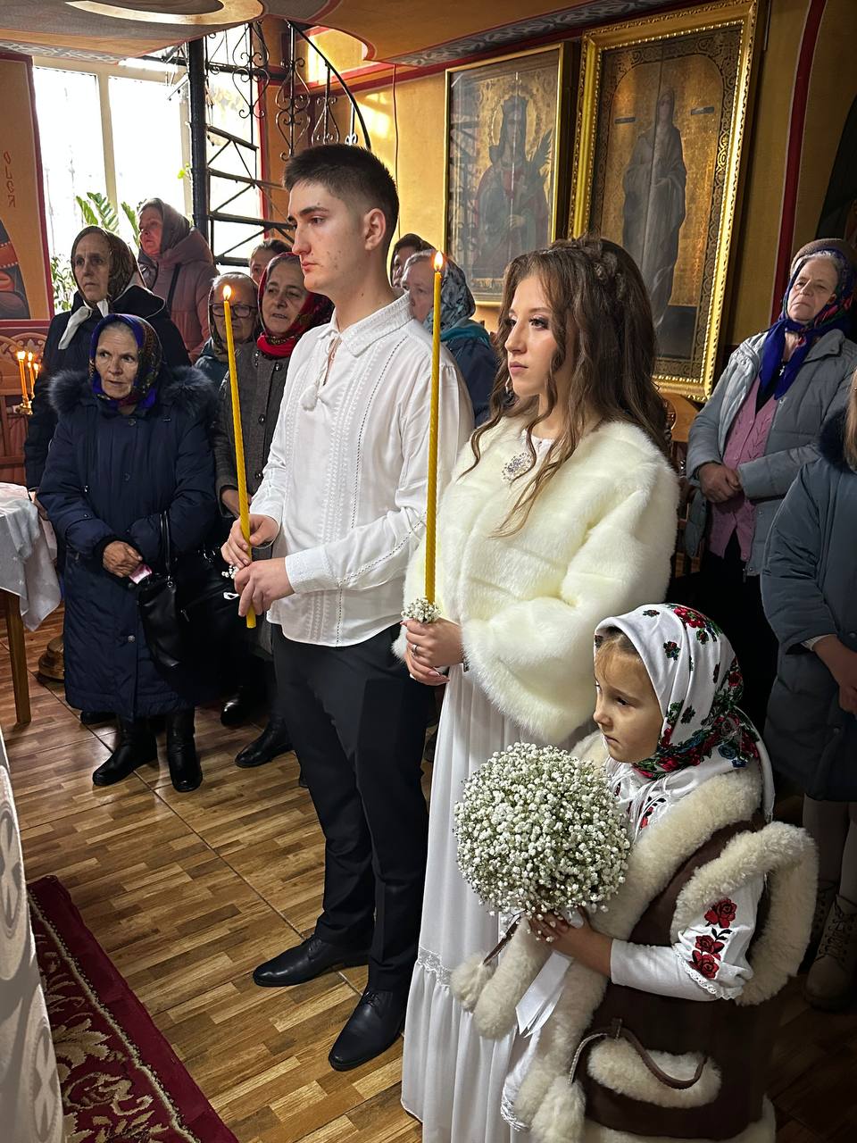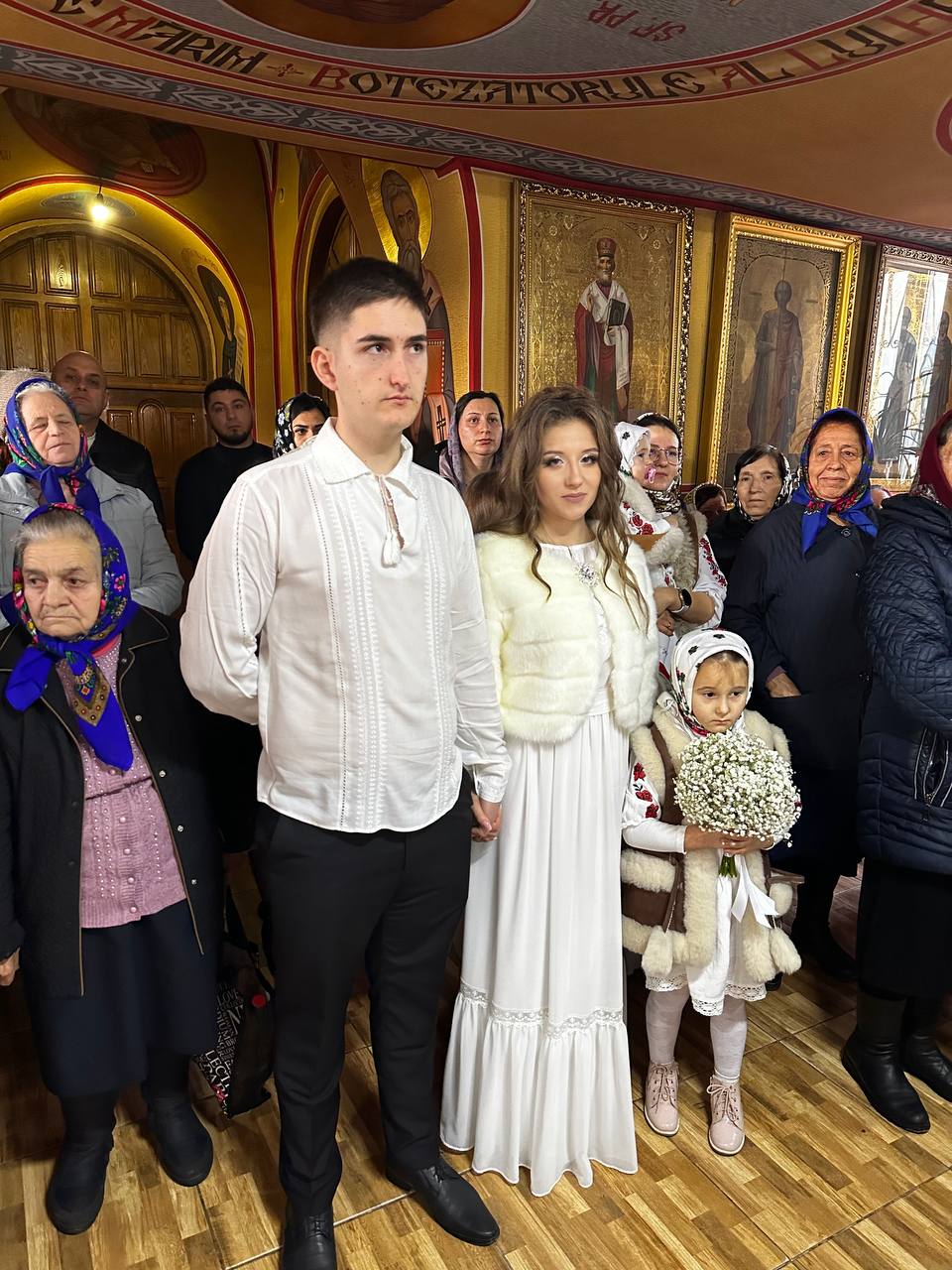 Astăzi, cum se obișnuia încă pe vremurile de cândva, în cadrul Sfintei Liturghii, a avut loc Taina Cununiei asupra tinerilor Vadim Trofim și Liuba Aga, fiica părintelui paroh, Ioan Aga.