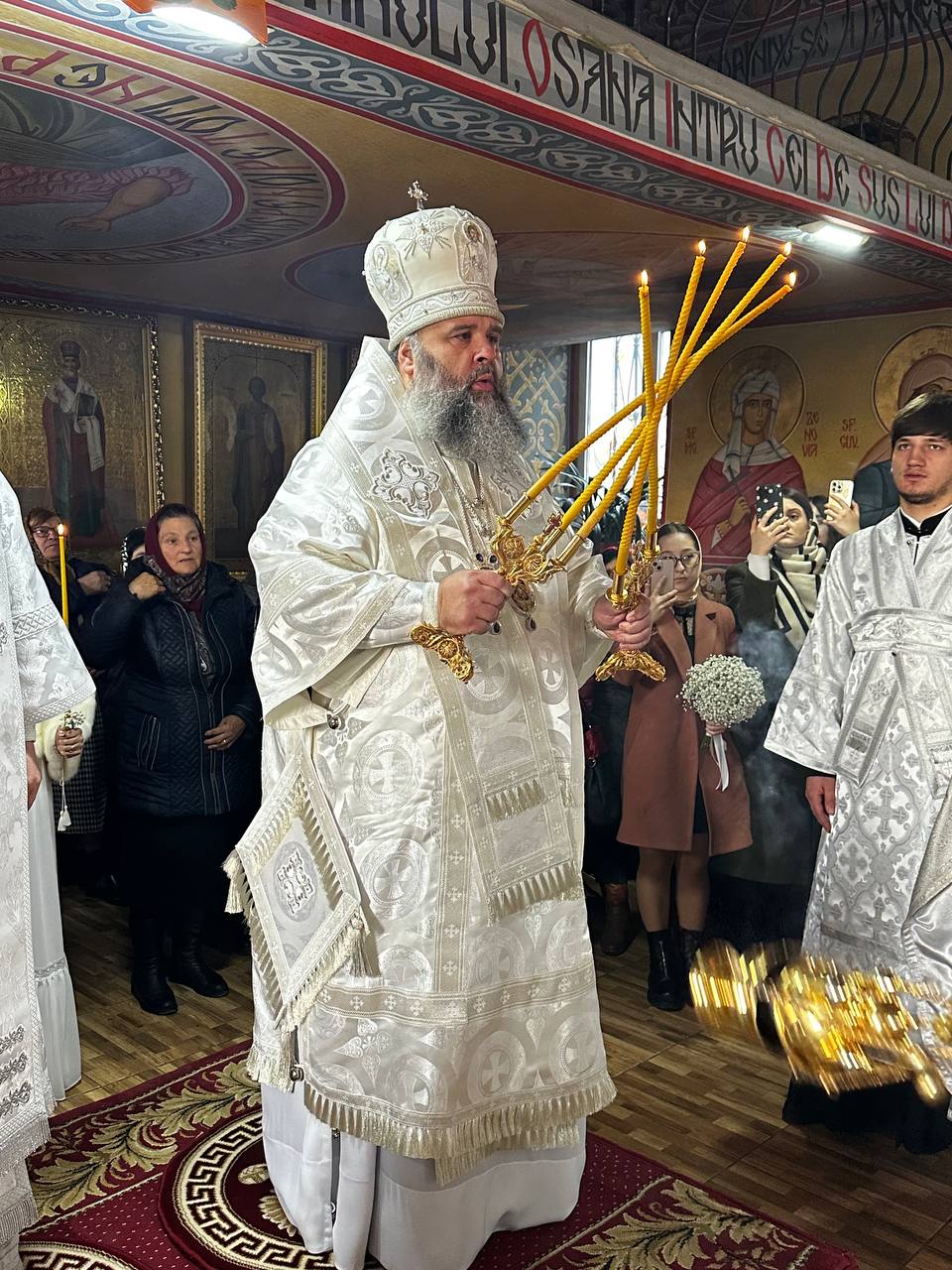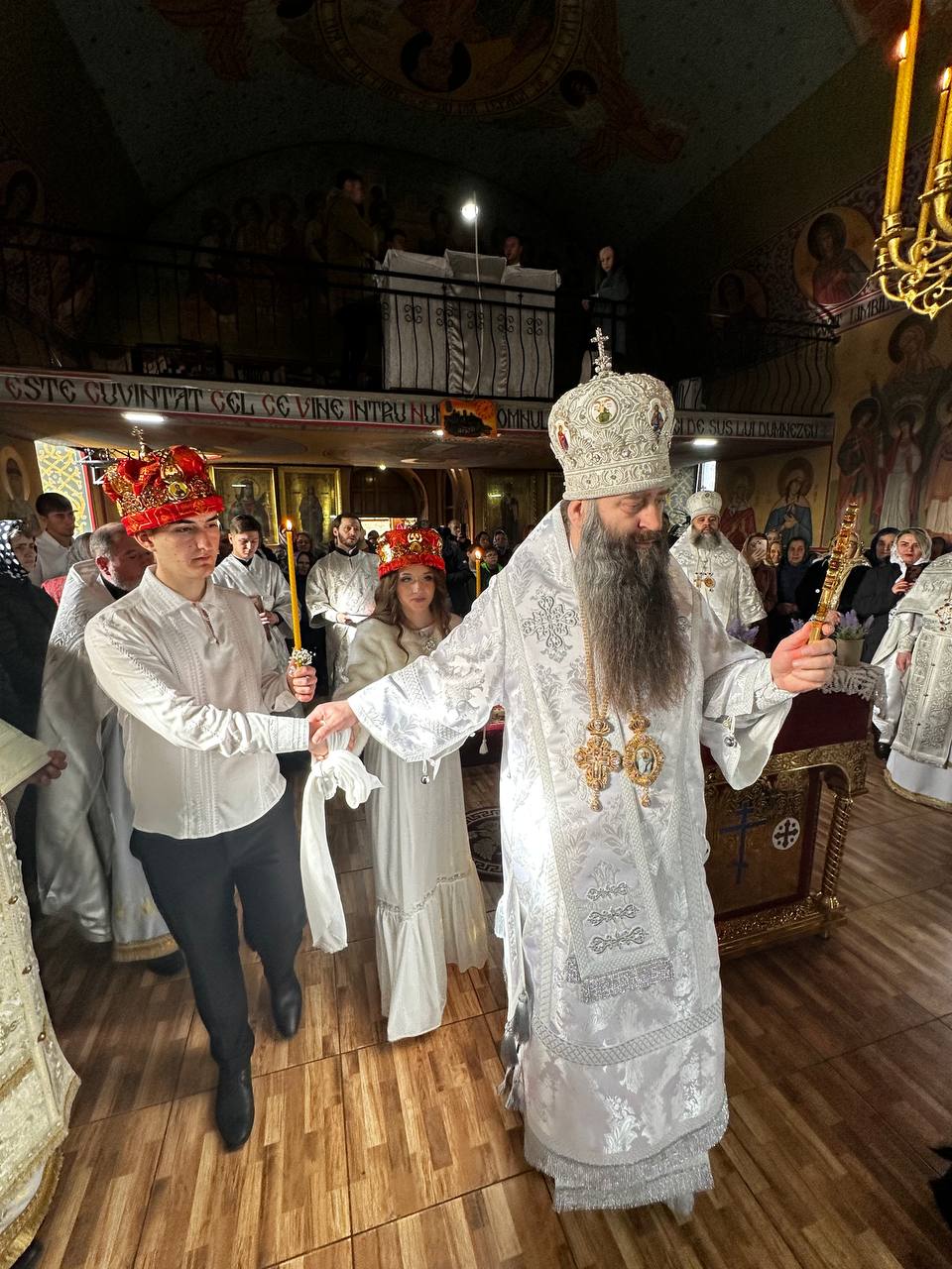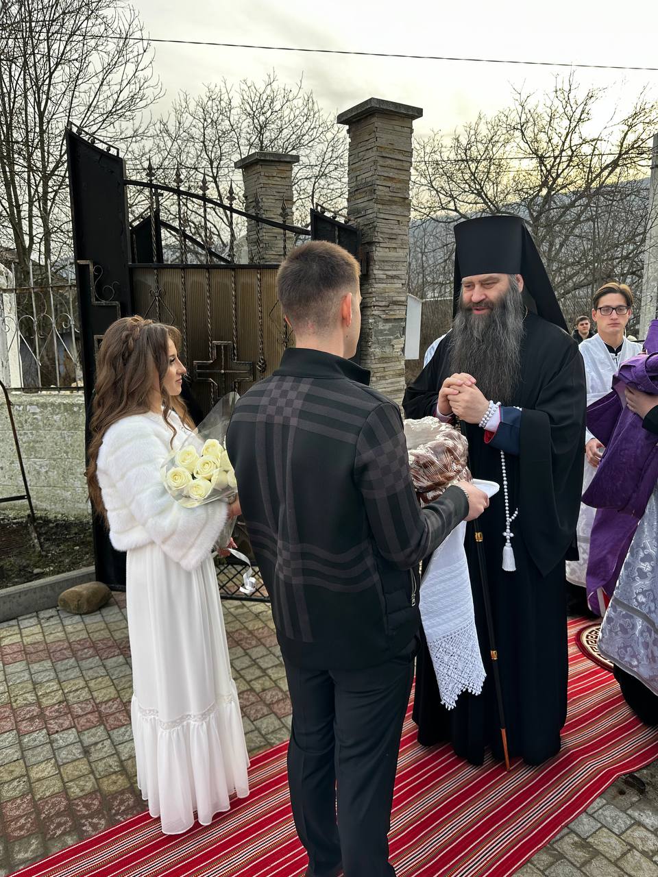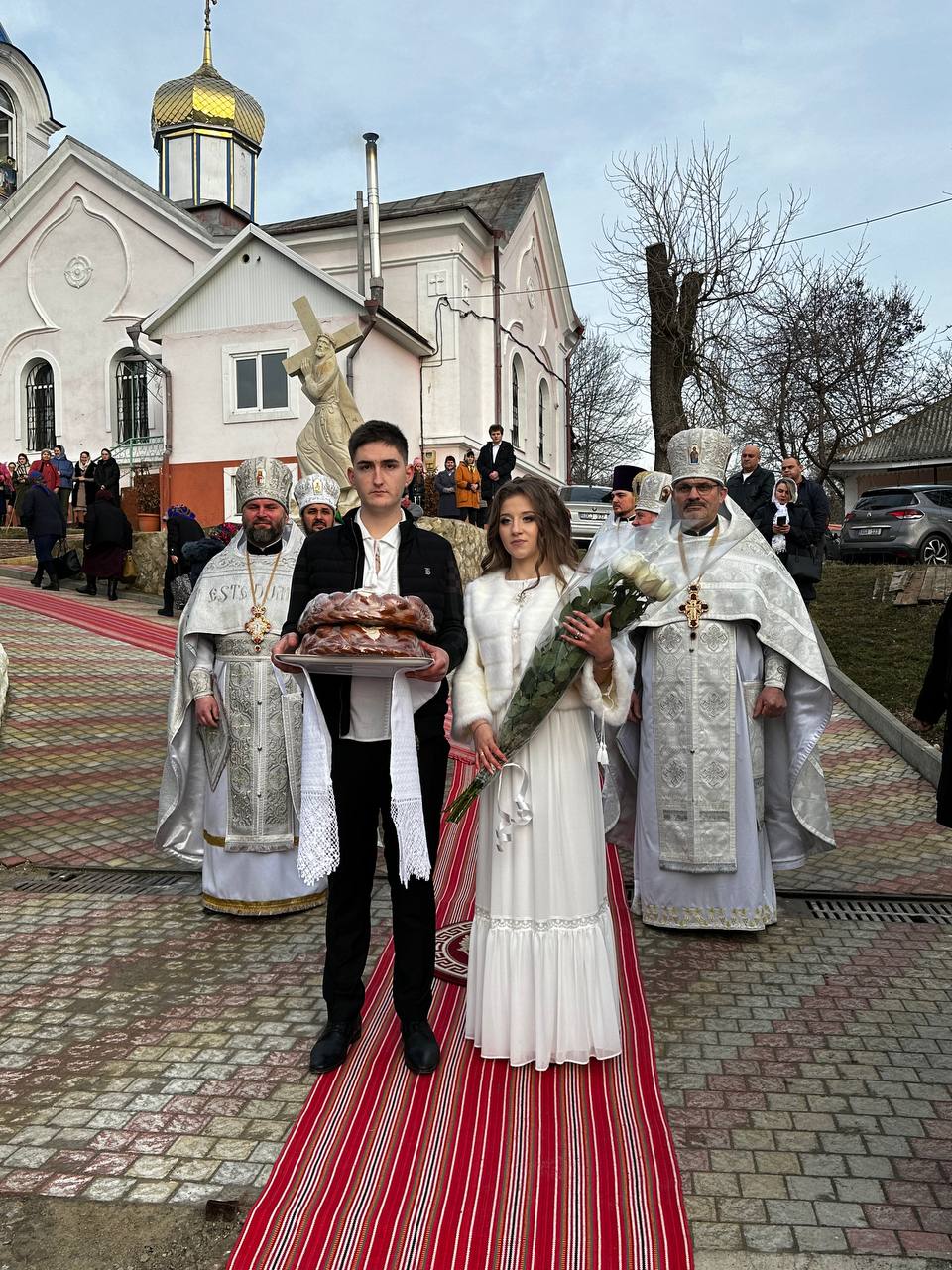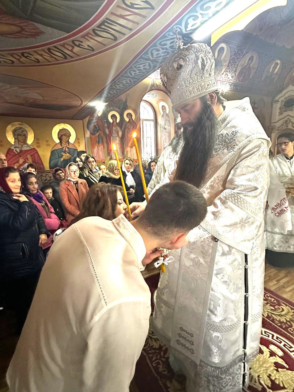Ierarhii au felicitat pe nou încununații Vadim și Liuba și i-a binecuvântat dorindu-le căsnicie fericită, ani îndelungați, sănătoși și cu spor în toată fapta cea bună, deasemenea și pe părintele-paroh prot. Ioan, pentru munca pe care o depune în această parohie deja de mai mulți ani inclusiv și pe enoriașii care sunt mereu alături de păstorul lor și îl susțin în toate lucrurile bune ce se petrec în această parohie.